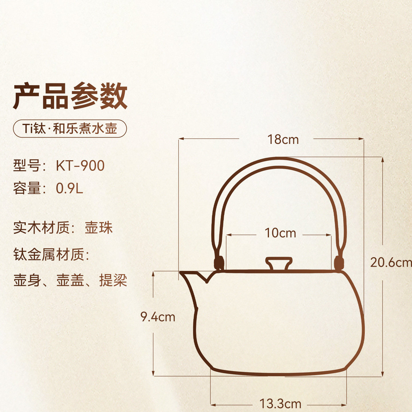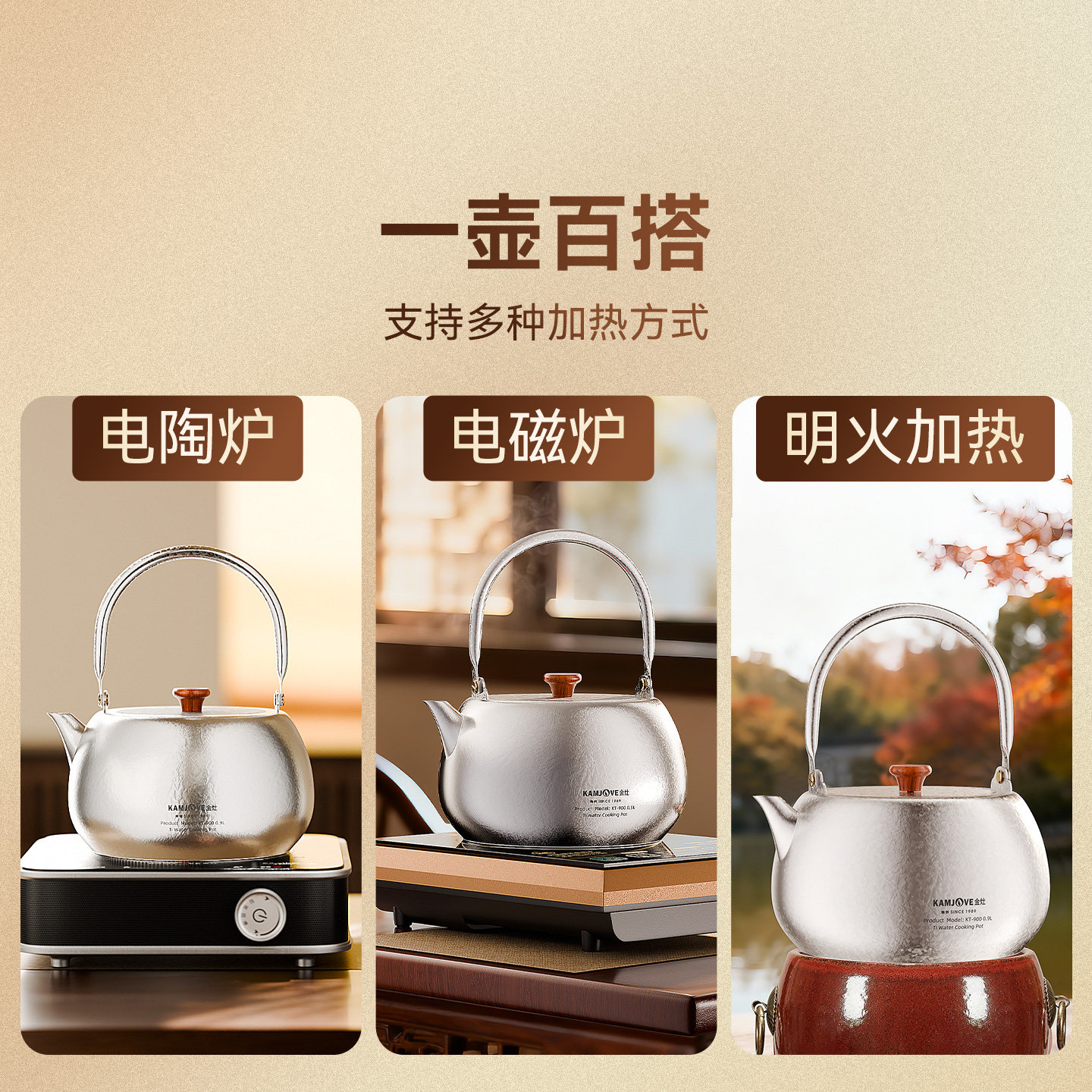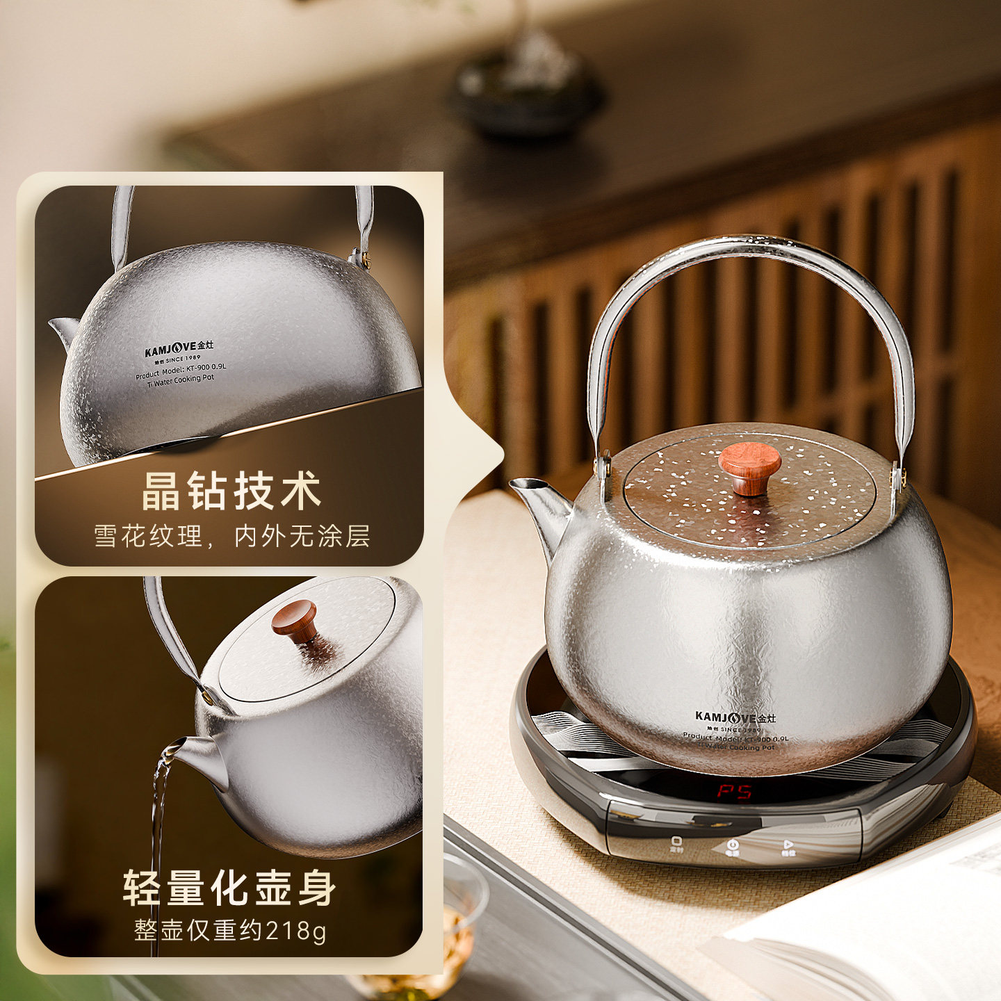 金灶KT-900钛茶壶户外露营煮茶壶提梁式烧水壶家用电陶炉泡茶专用