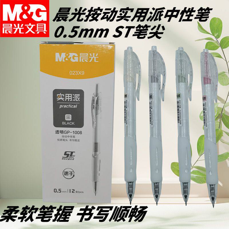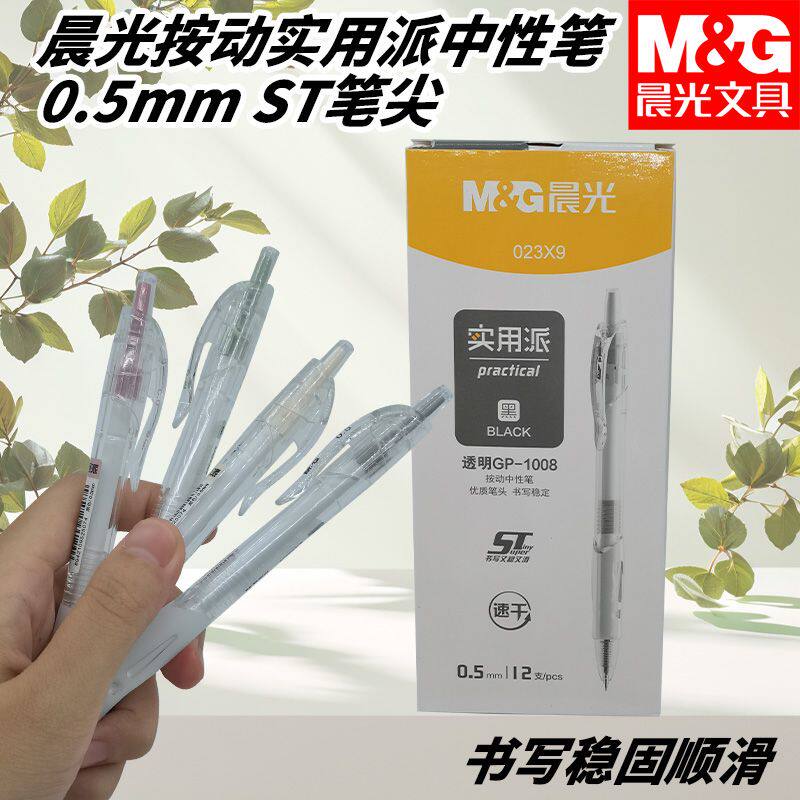 晨光中性笔按动式gp1008学生考试用笔0.5圆珠笔黑色水笔批发速干碳素笔医用处方墨蓝按动笔教师批改专用红笔