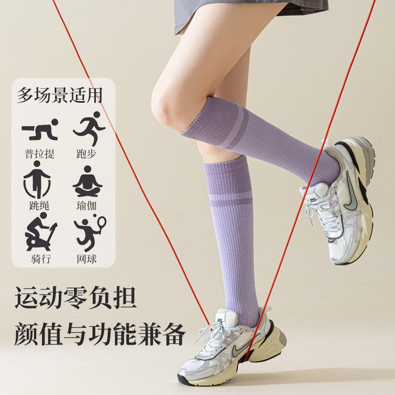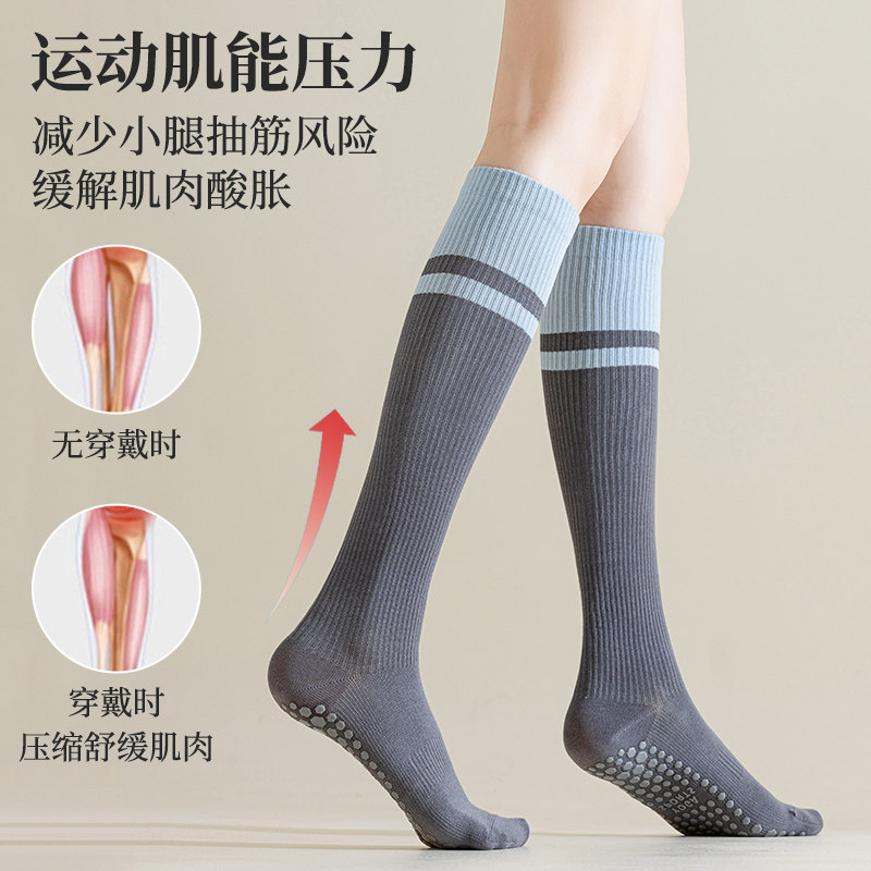 压力小腿运动袜子女夏季专业跑步跳绳健身瑜伽防滑长筒专用骑行袜