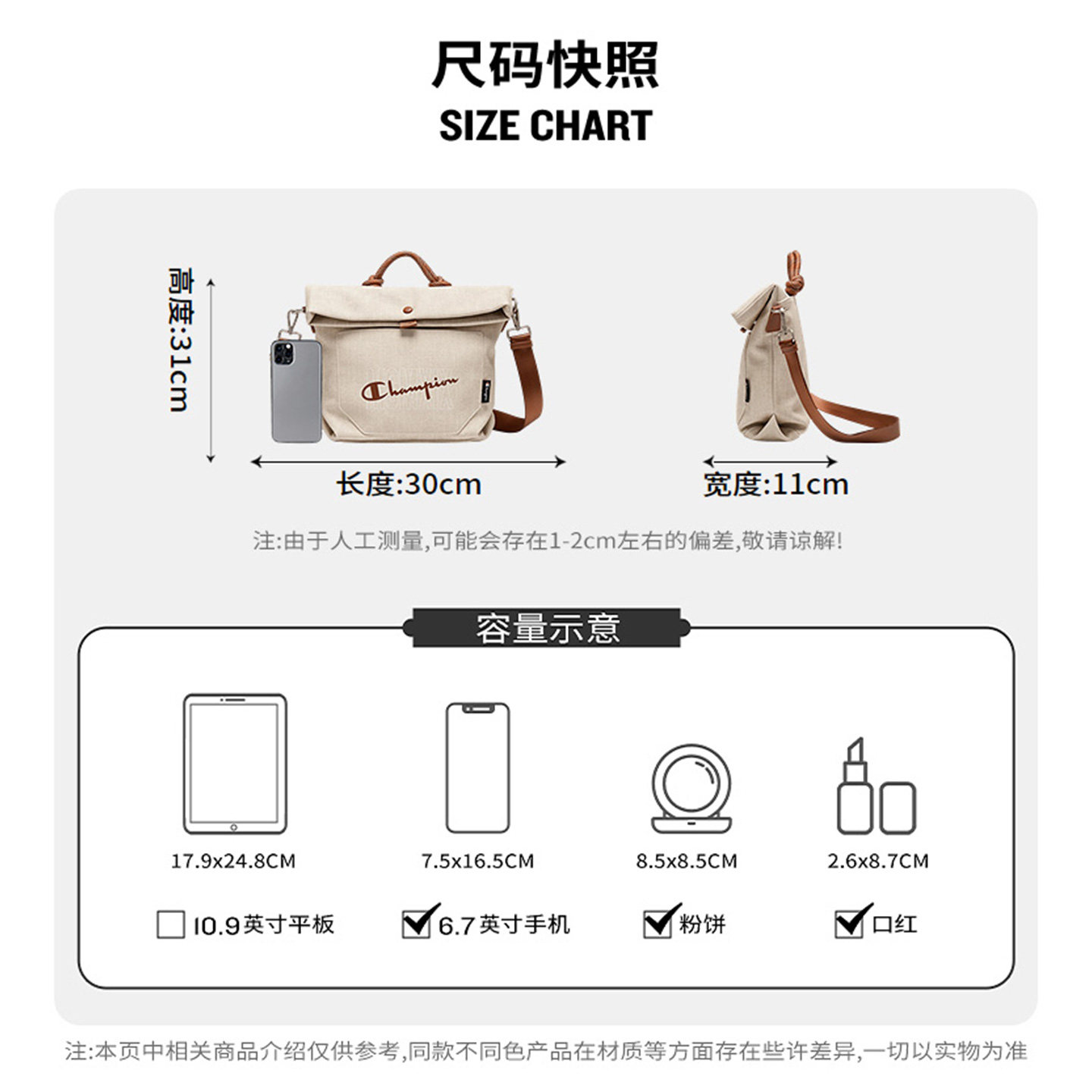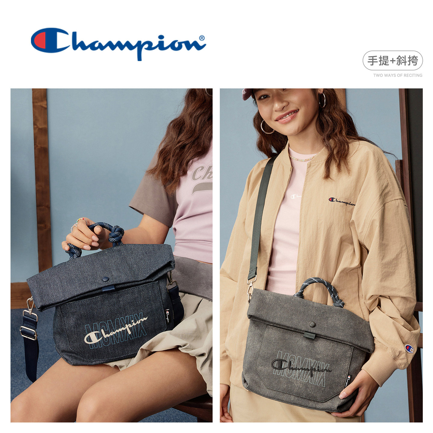 champion冠军26春季新款折折包手提斜挎包女士通勤风旅游帆布包
