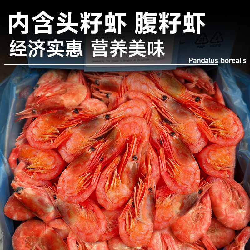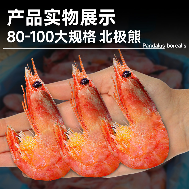 北极甜虾北极熊甜虾刺身北极虾头籽腹籽特大号冰虾海鲜水产即食