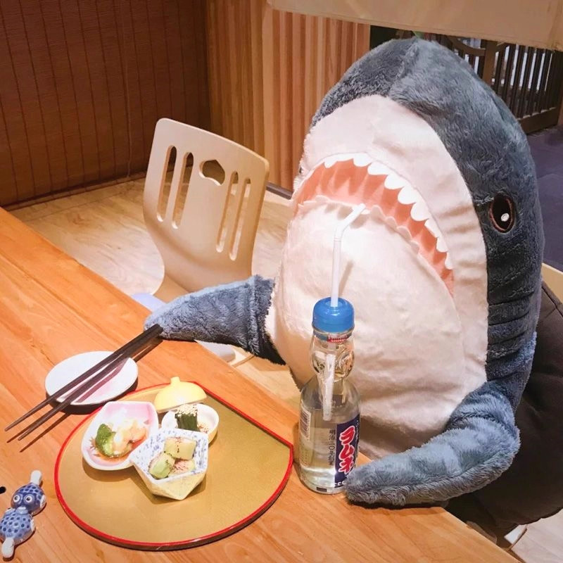 蓝色鲨鱼玩偶毛绒玩具啊呜大哈鱼公仔睡觉抱枕布娃娃床上夹腿礼物