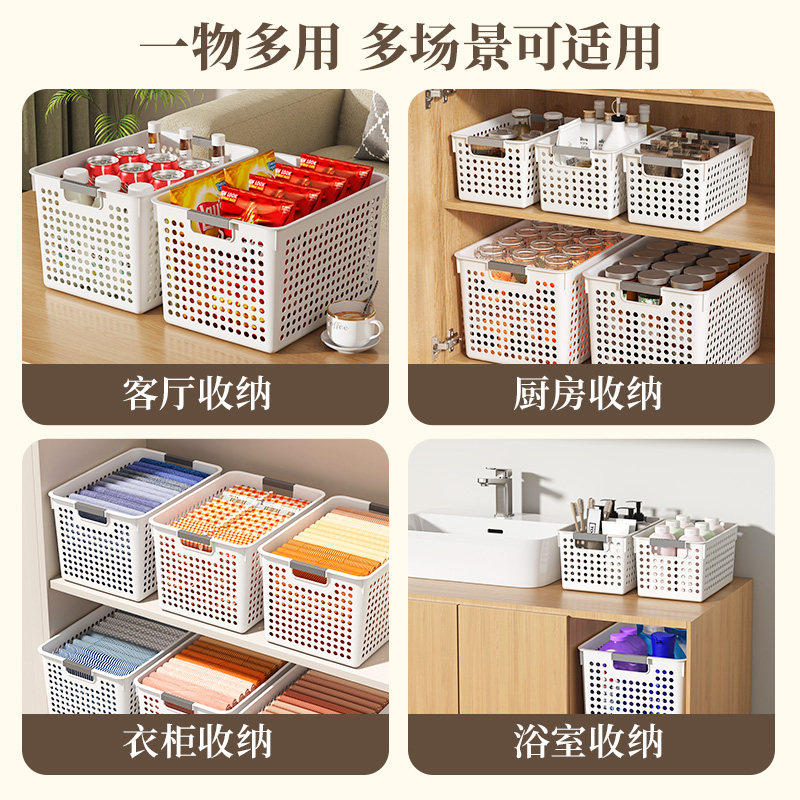 杂物收纳筐零食玩具整理箱家用塑料储物盒厨房橱柜篮子桌面置物筐