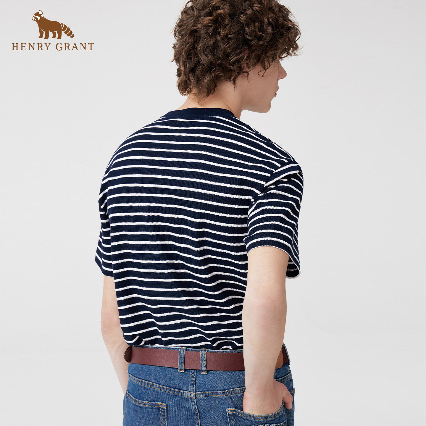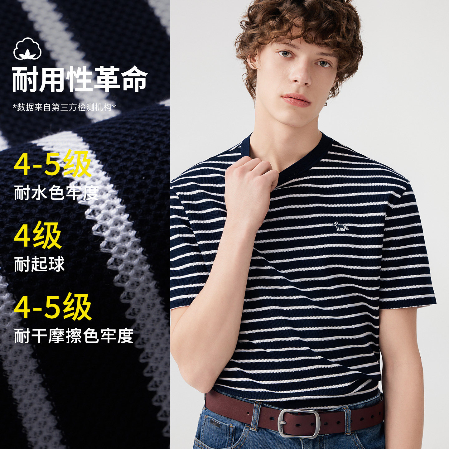 【匹马棉】亨利格兰圆领条纹短袖T恤2026年夏季透气休闲打底上衣