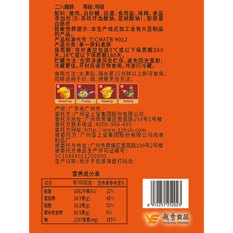 皇上皇腊肠二八腊肠8分瘦350g 广式香肠腊味干货特产年货手信广式
