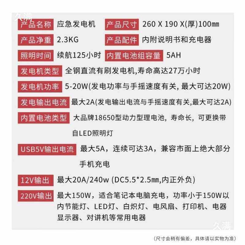 手摇发电机野外求生输出照明大功率机充应急电源220V/12V