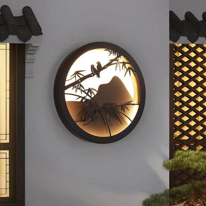 新中式户外防水壁灯庭院阳台过道灯别墅门厅灯花园外墙山水壁灯