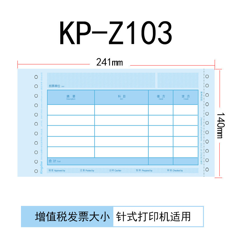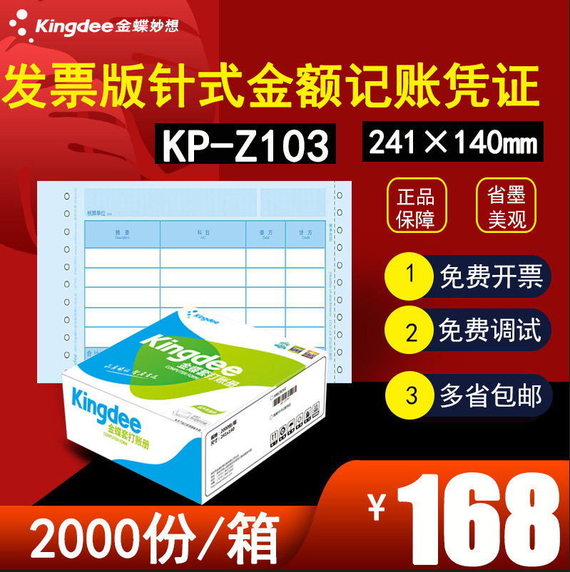 金蝶妙想发票版针式会计金额记账凭证KP-Z103套打增票大小241*140mm财务连续打印纸金蝶软件适用2000份/箱