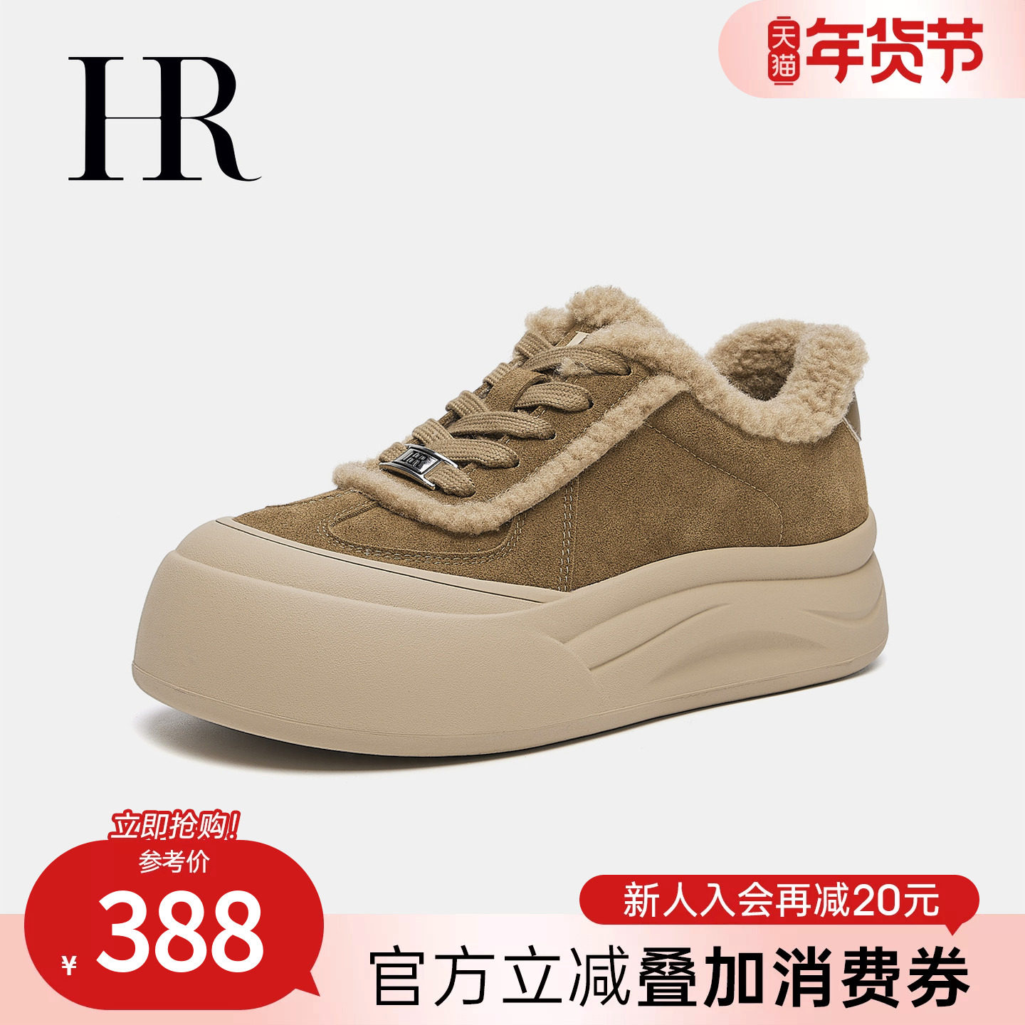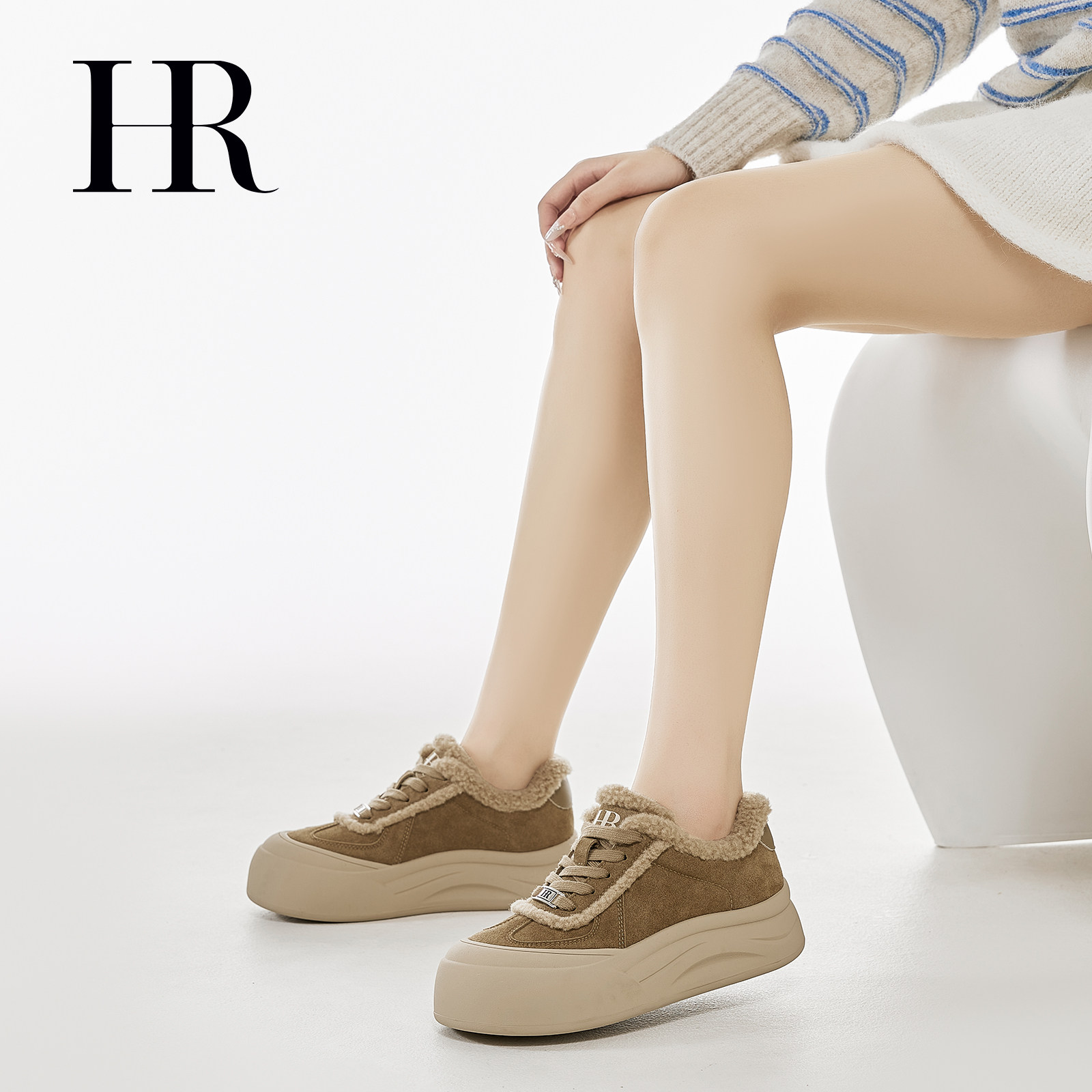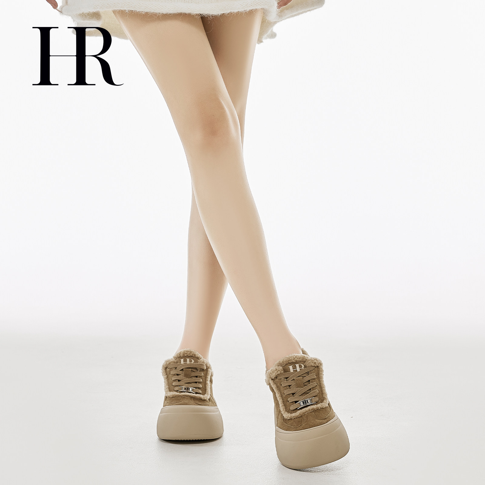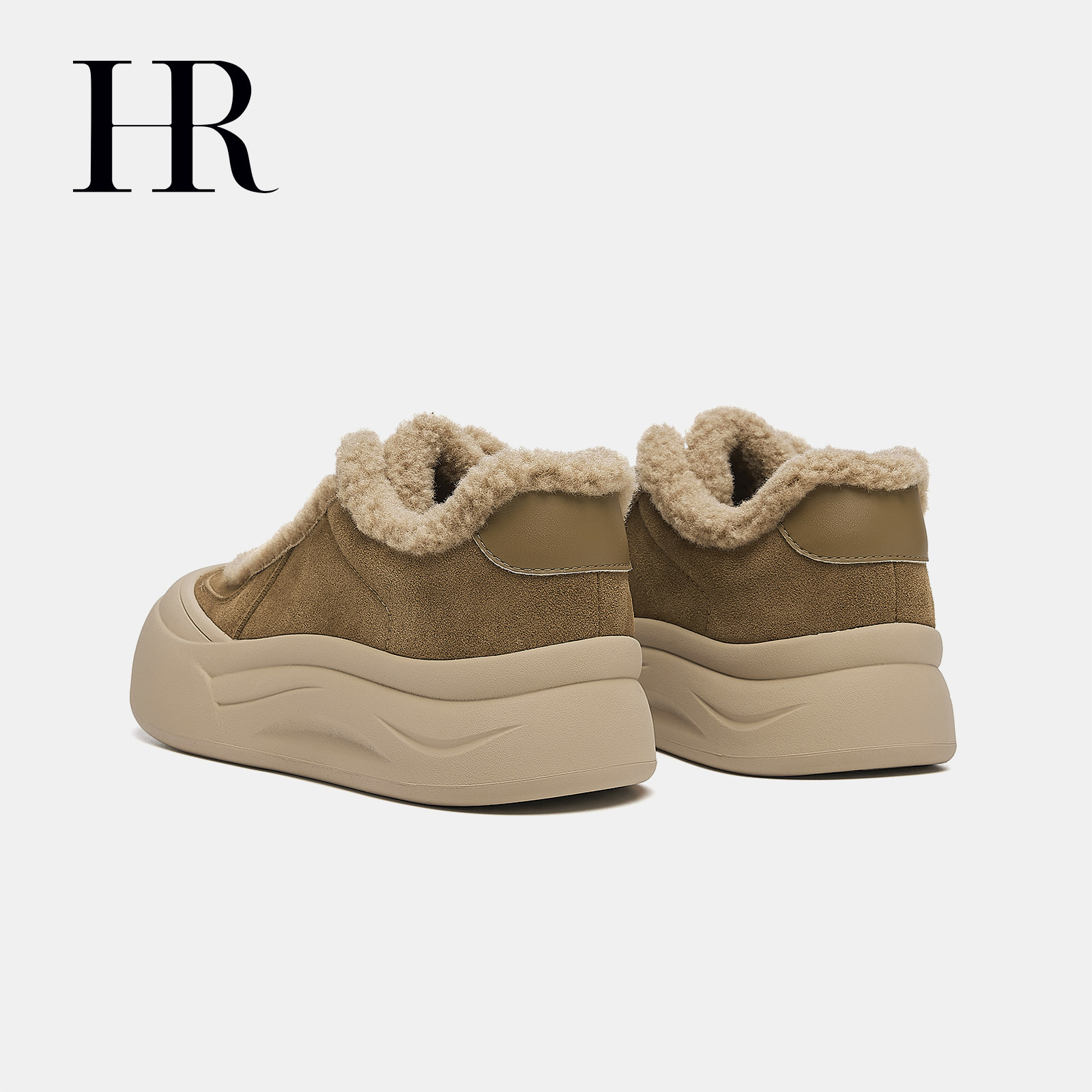 HR赫莲娜女鞋子2026年冬季新款复古圆头反绒皮毛毛休闲鞋厚底棉鞋