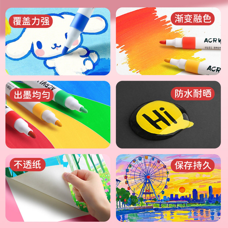 丙烯马克笔防水速干水彩笔儿童美术陶瓷石头涂鸦绘画彩色画笔套装