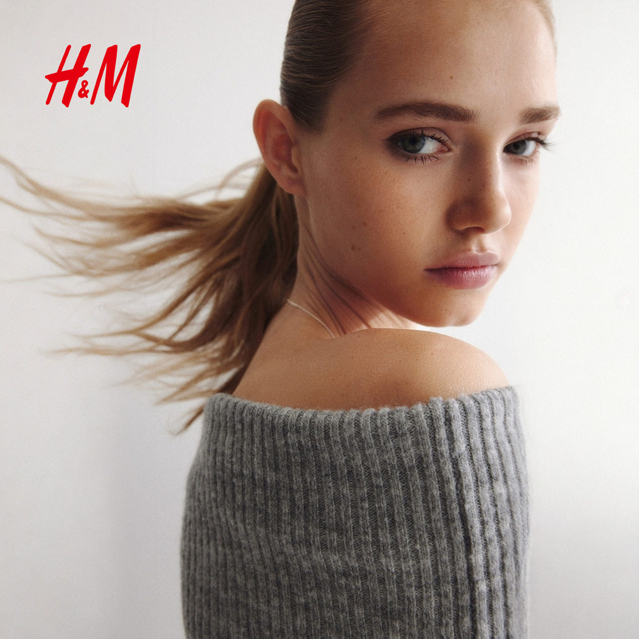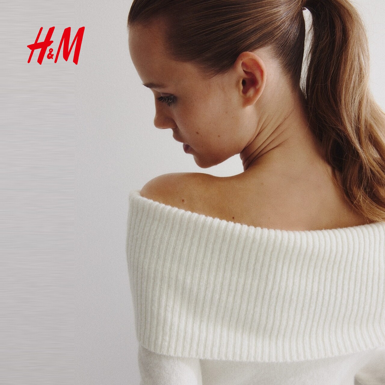 HM女装毛针织衫春季一字肩长袖内搭打底衫露肩毛衣套衫1296847