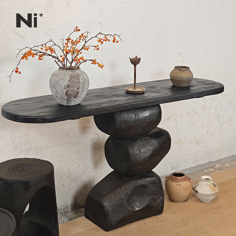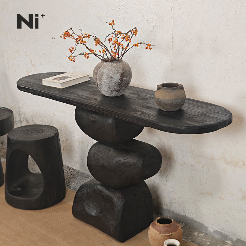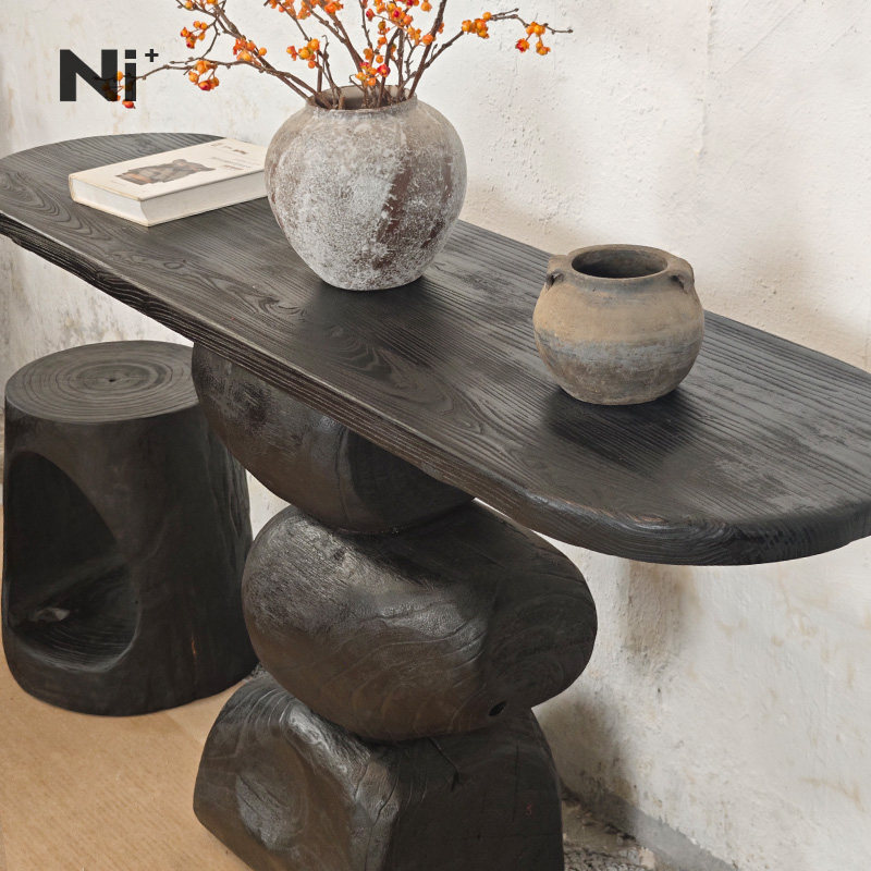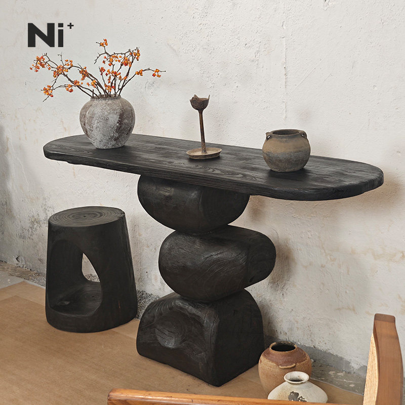 Ni尼家侘寂风玄关台中古风实木案台桌艺术饰品复古黑色家具摆件桌
