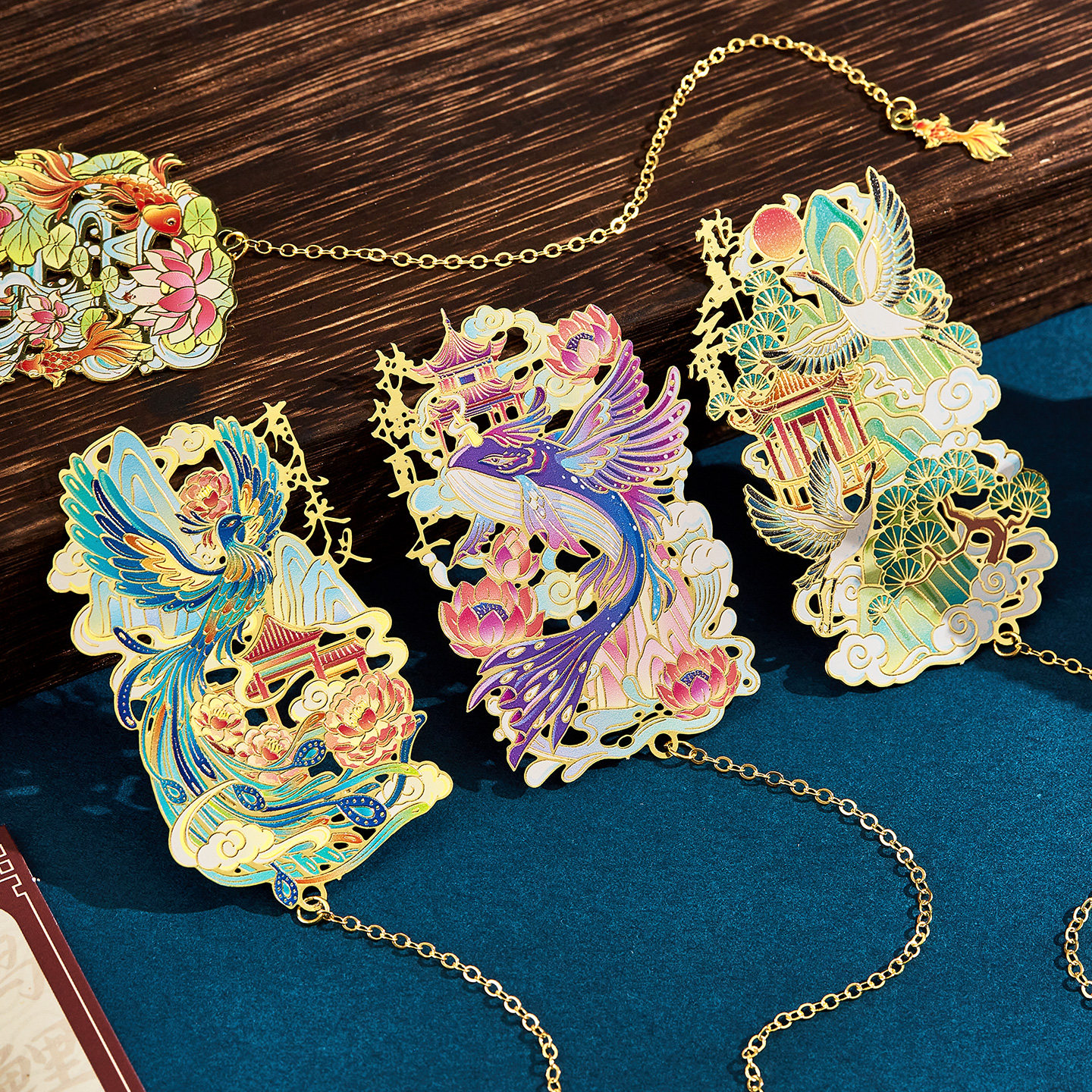 励志锦鲤书签古典中国风金属镂空刻字书签故宫文创纪念小众高颜值高档精致学生奖励毕业礼物创意文具定制logo