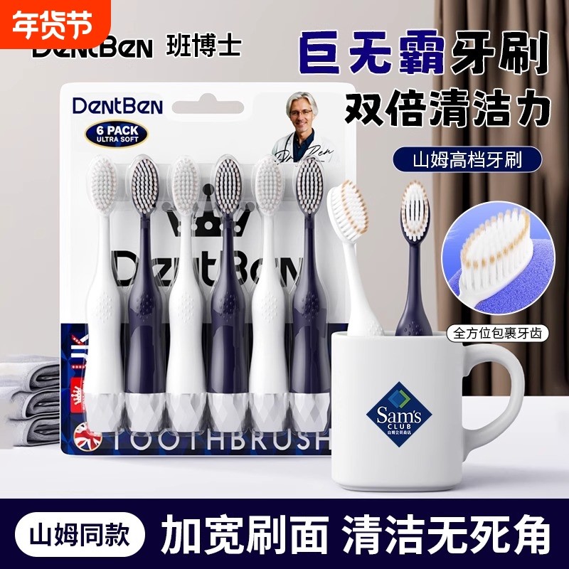 山姆同款巨无霸牙刷软毛成人大头牙刷男女品牌第一正品家庭6支装