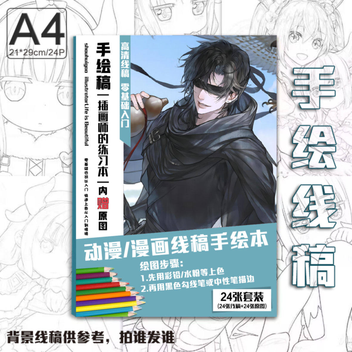 盗墓笔记张起灵手绘线稿本线稿动漫临摹素材马克笔定制款画册学生