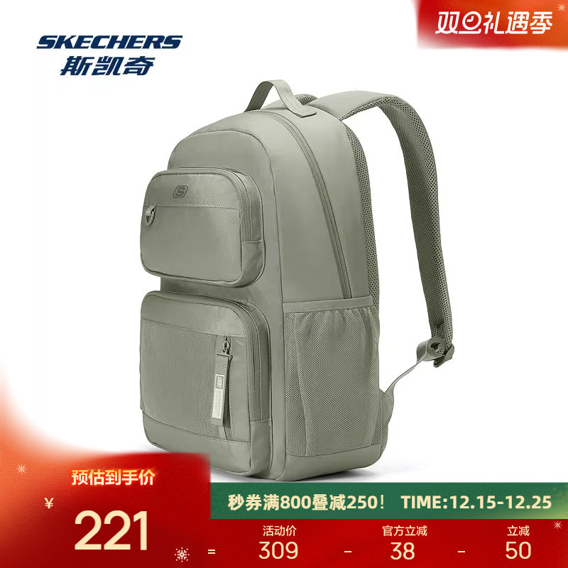 斯凯奇2025秋男女同款风尚系列双肩背包大容量时尚书包休闲户外包