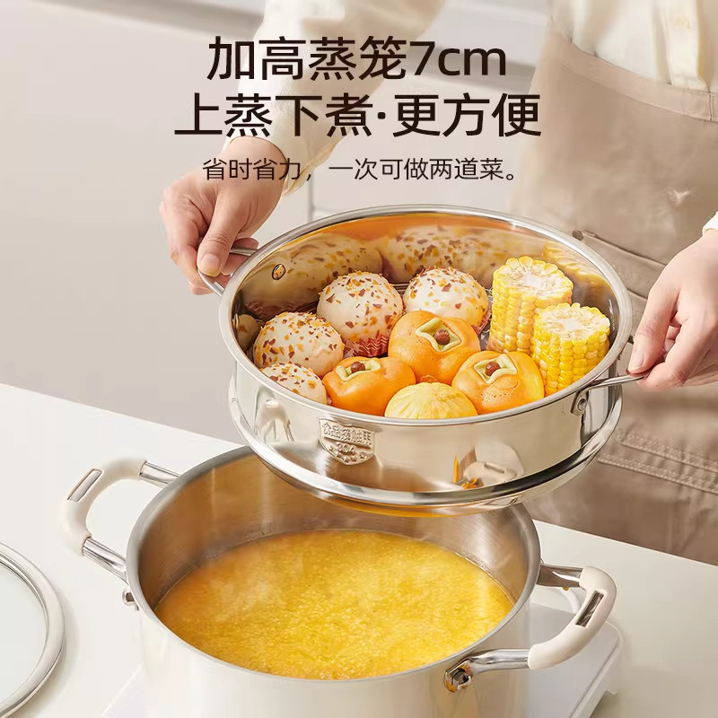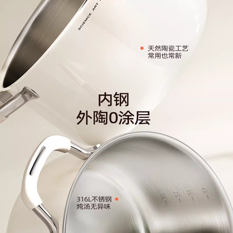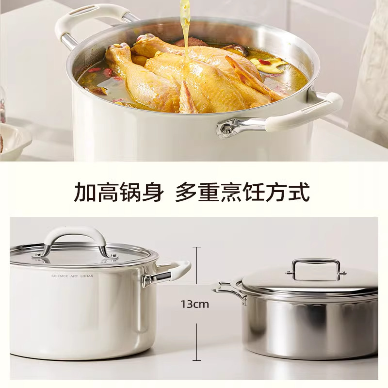加厚陶瓷不锈钢食品级汤锅家用双耳电磁炉燃气专用煮粥煲煮锅不粘