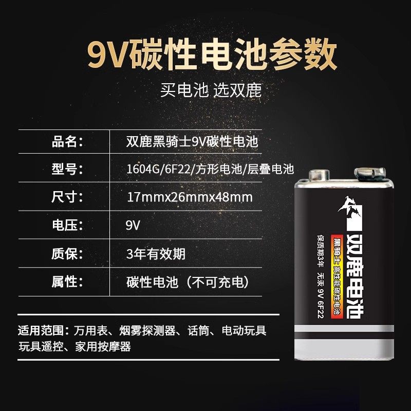 双鹿电池9V碳性方块九伏万用表6F22玩具遥控器烟雾报警话筒麦克风