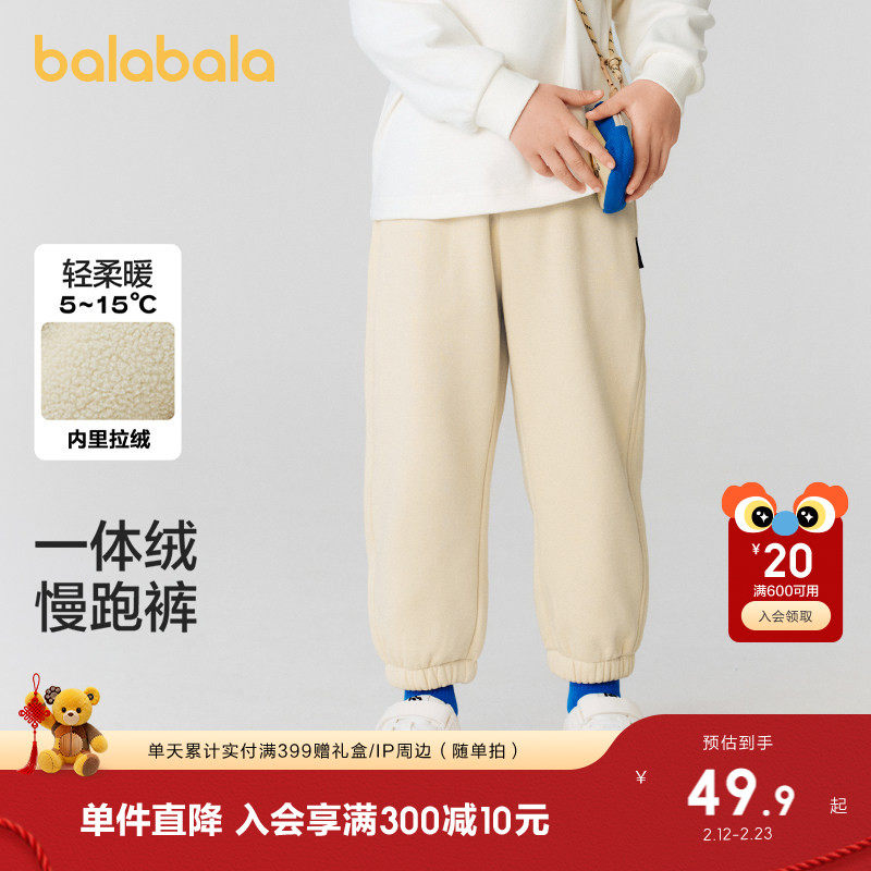 巴拉巴拉童装儿童运动裤男童女童冬装加绒长裤子保暖加厚一体绒潮