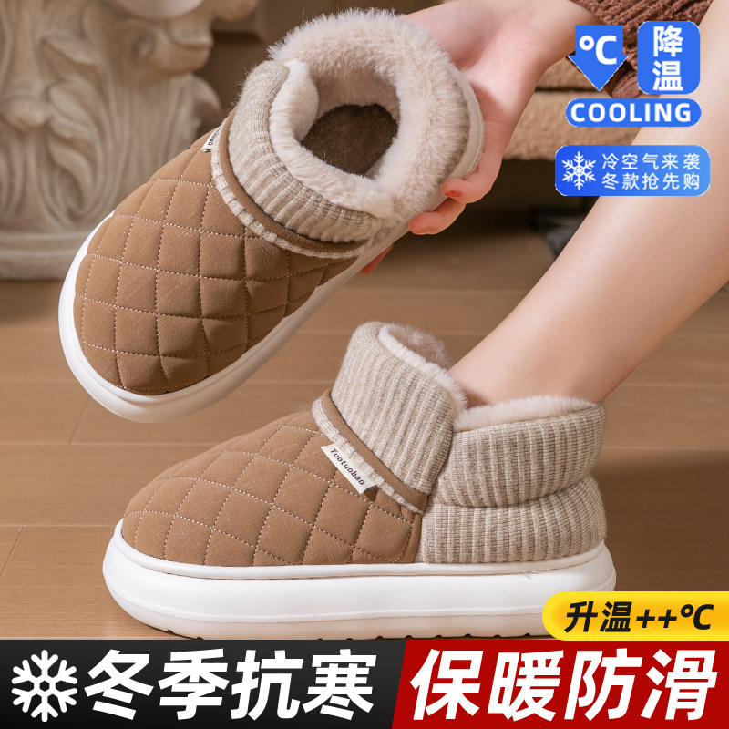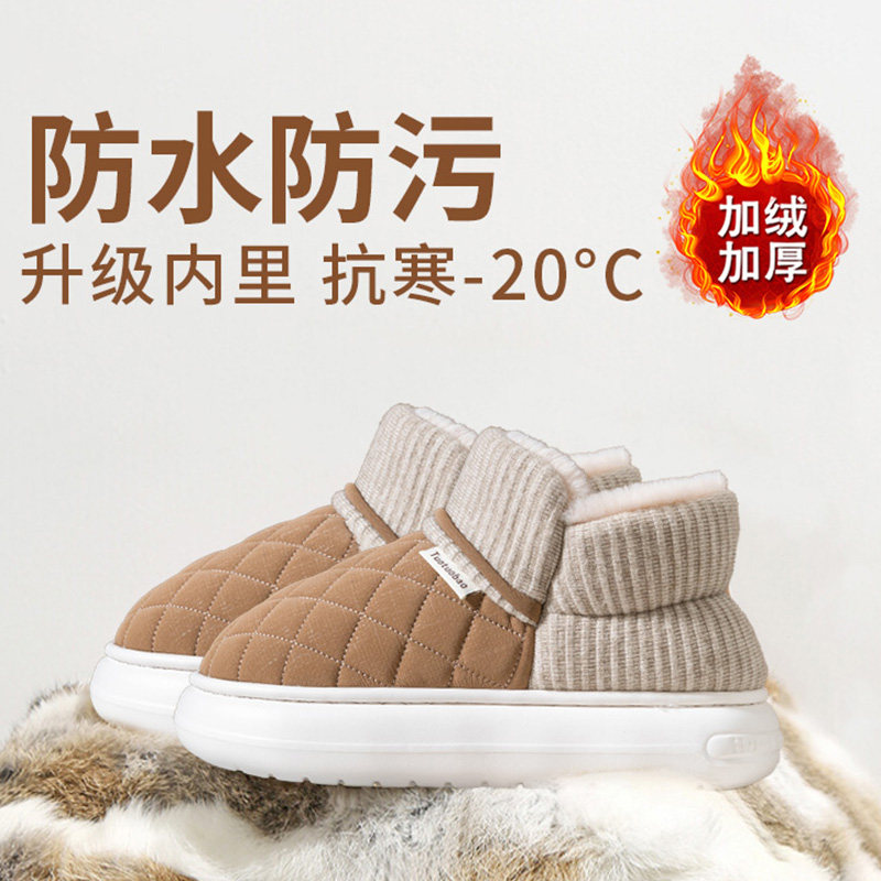 防滑棉拖鞋女士冬季雪地靴2025新款加绒厚底保暖棉鞋冬天防水黑色