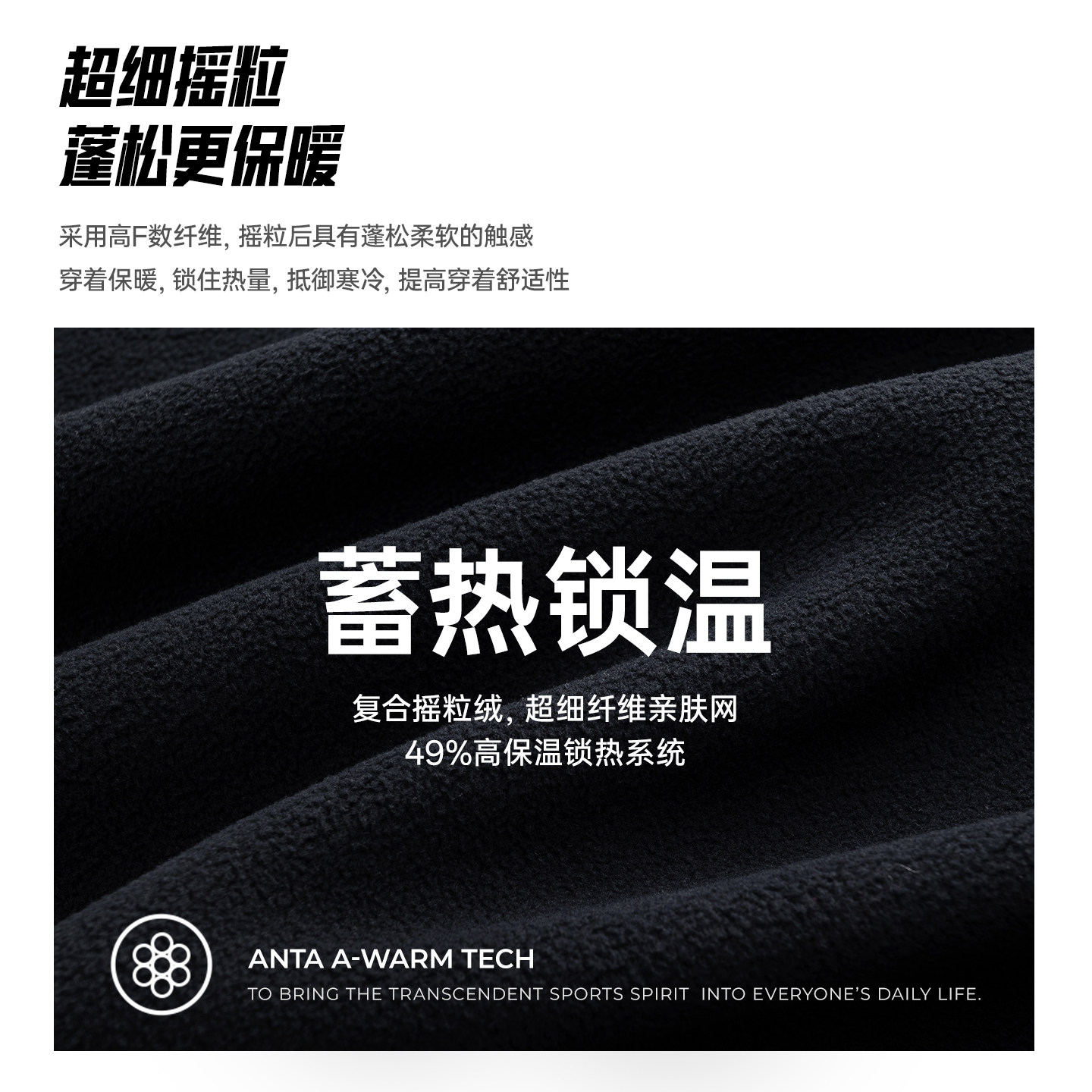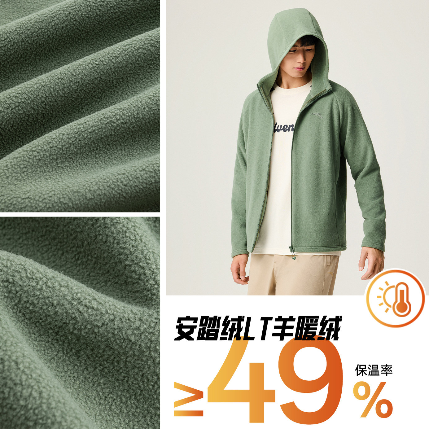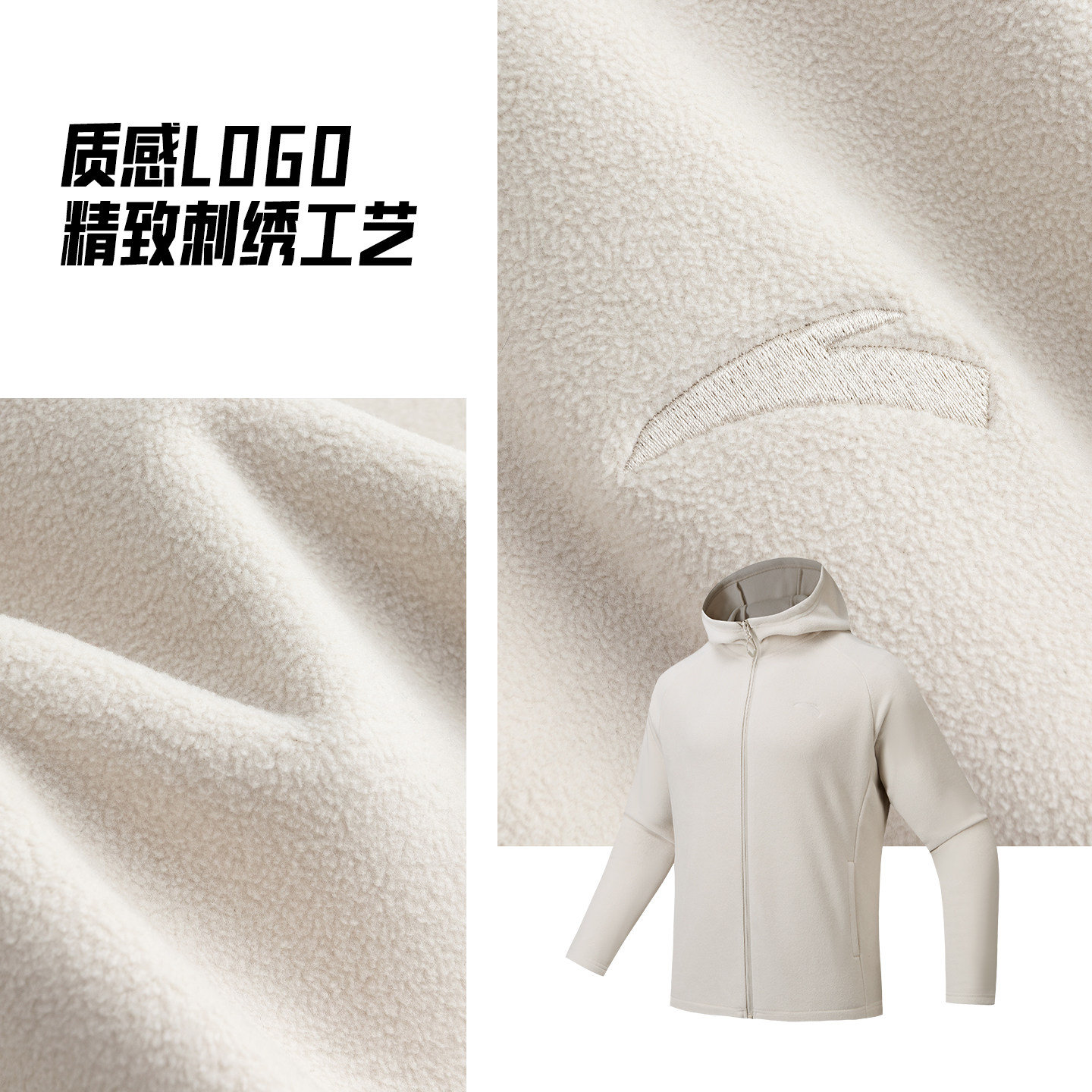 安踏摇粒绒户外抓绒衣男女2025冬季新款连帽外套冲锋衣内胆夹克
