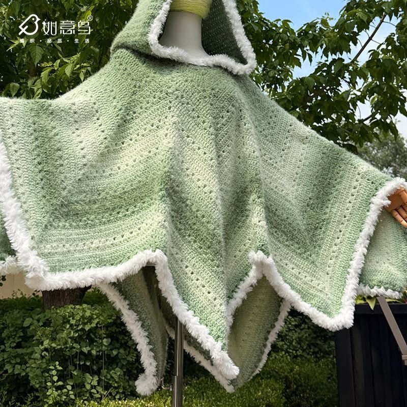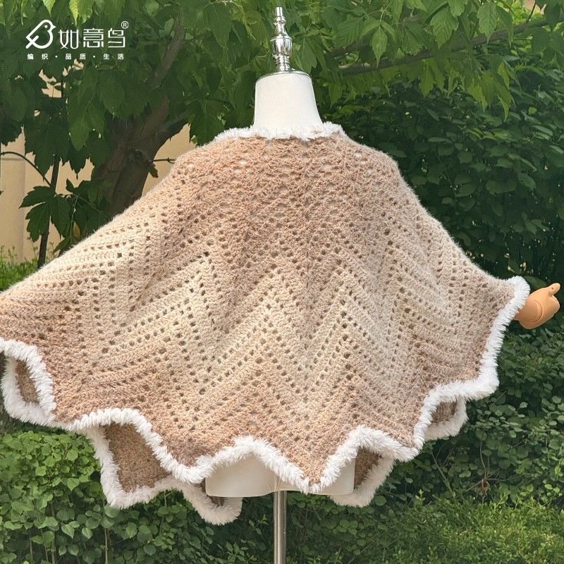 轻岚七星斗篷DIY组合装钩织手工渐变毛线七星毯长绒材料包