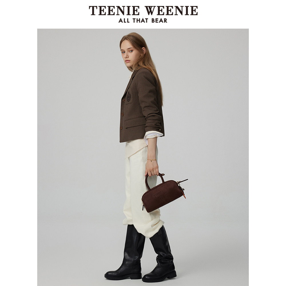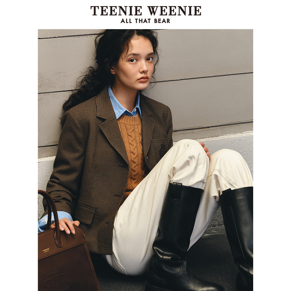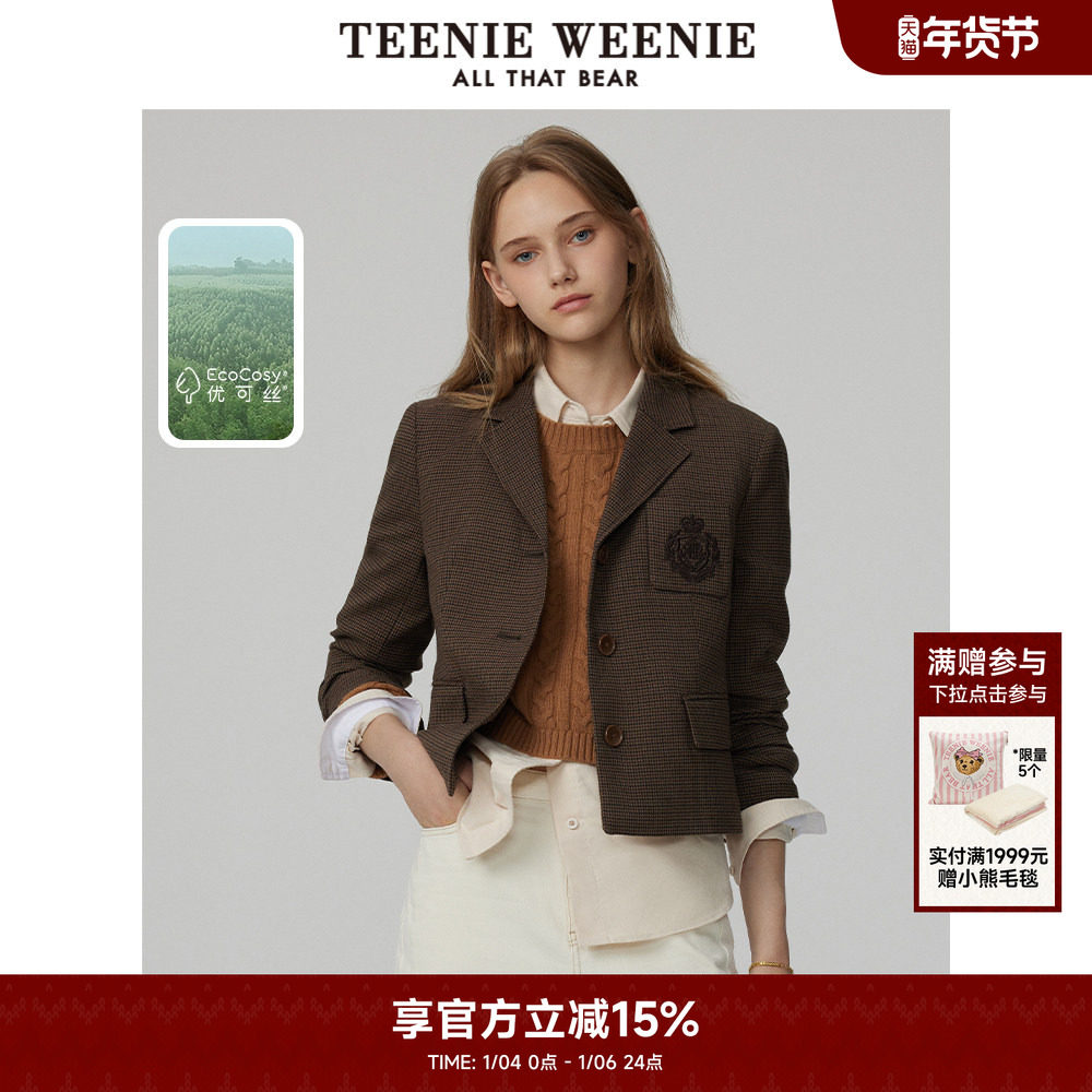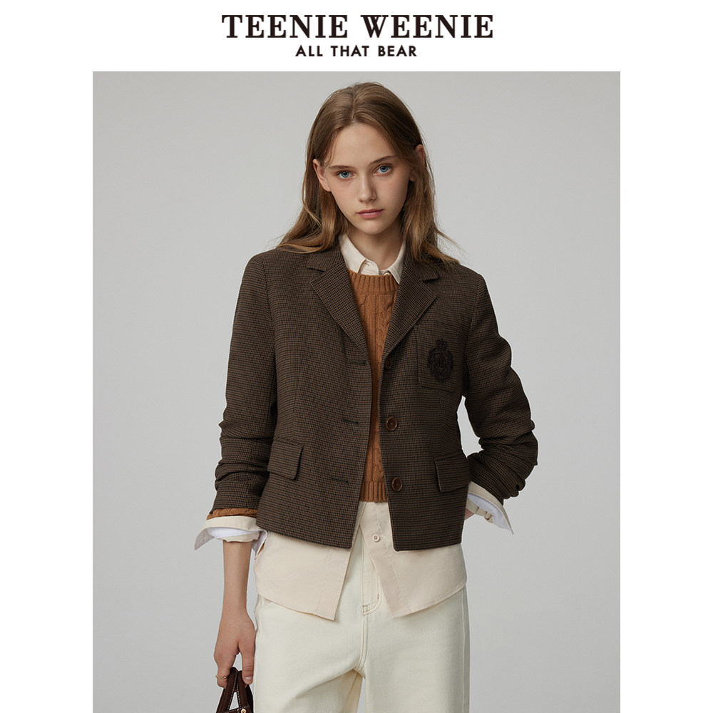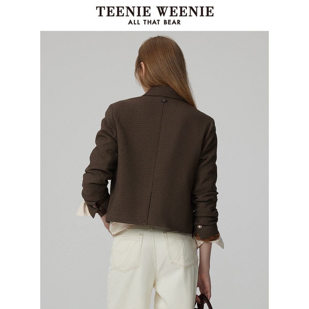 TeenieWeenie小熊奥莱春季优可丝千鸟格气质短款学院西装外套