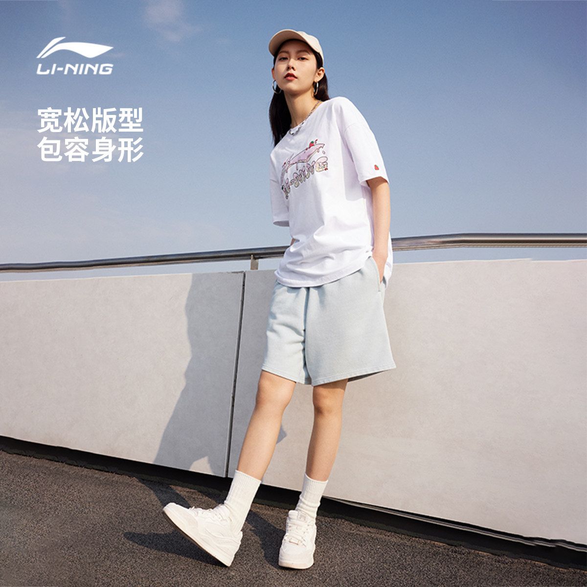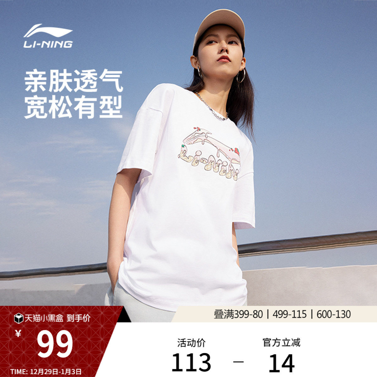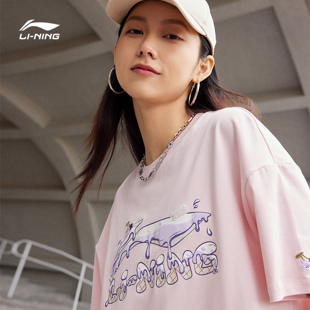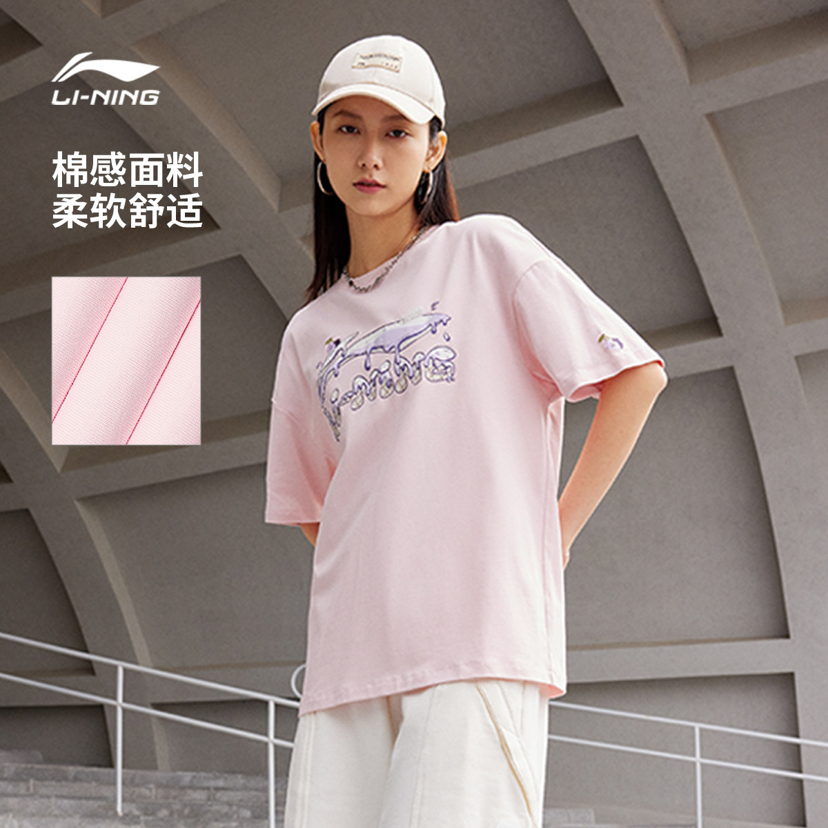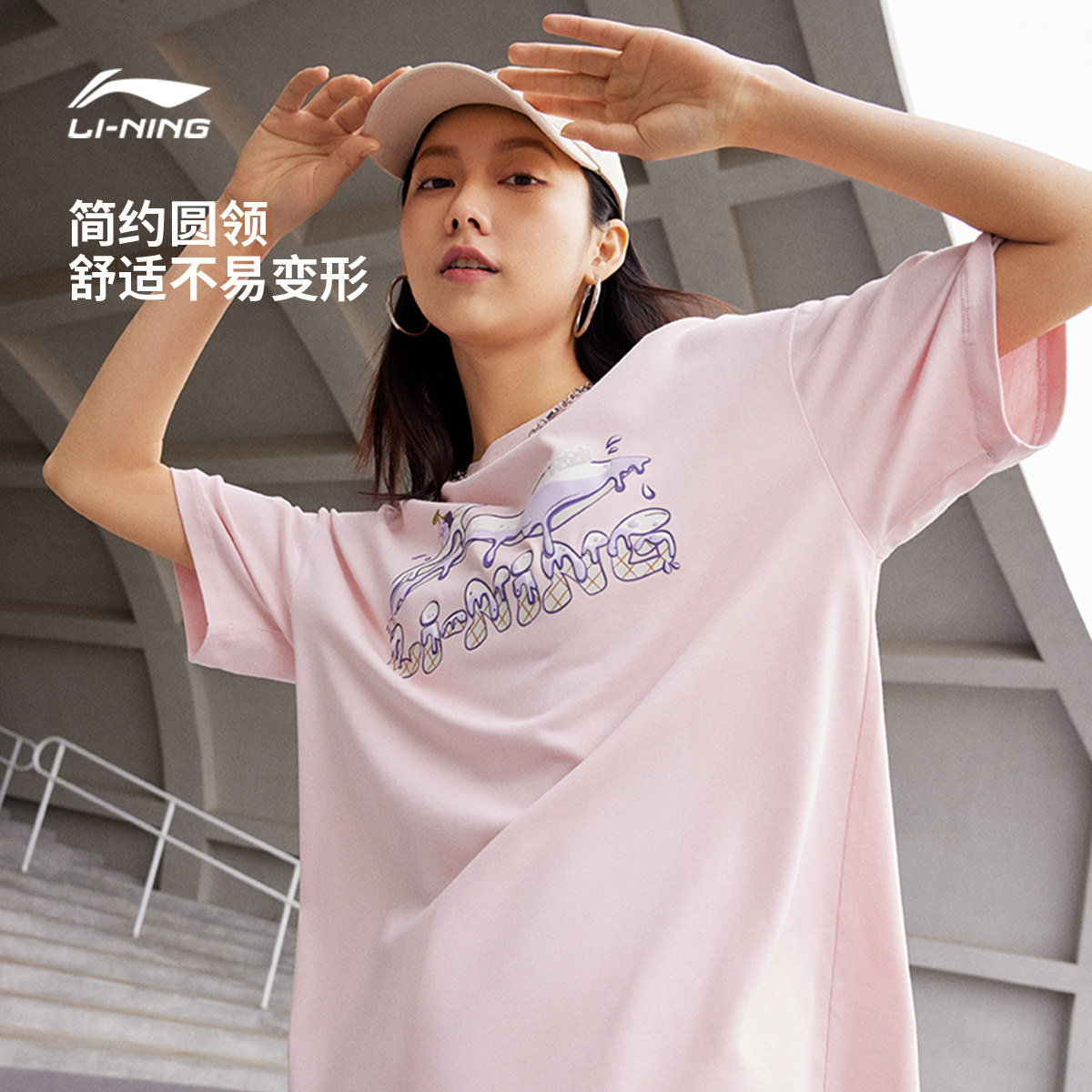 李宁短袖女士夏季官方女装圆领半袖印花舒适上衣休闲体恤运动T恤