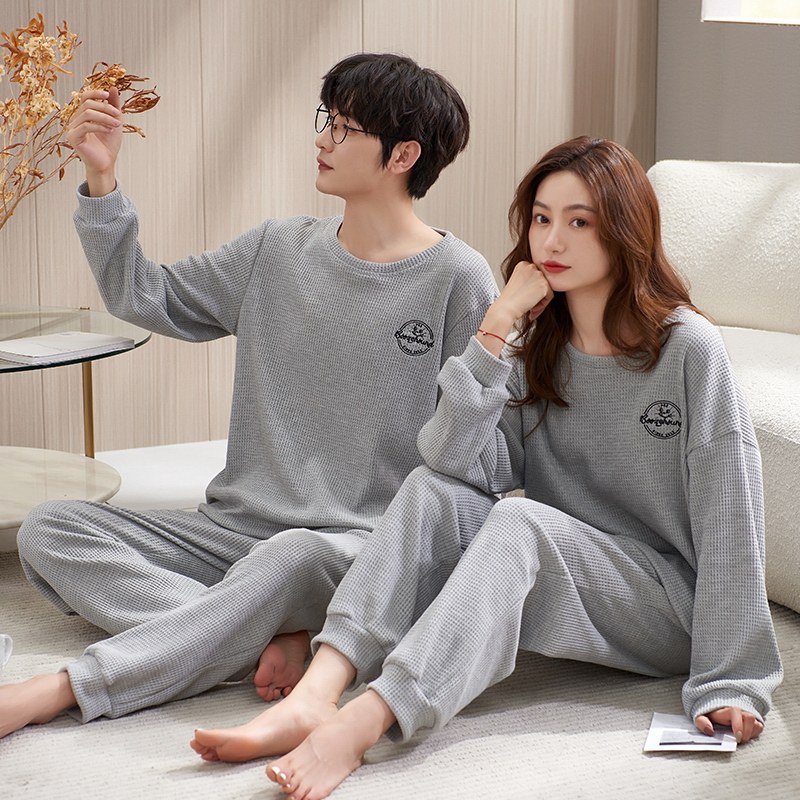 情侣睡衣春秋季2025新款长袖秋冬天男女士华夫格家居服套装可外穿