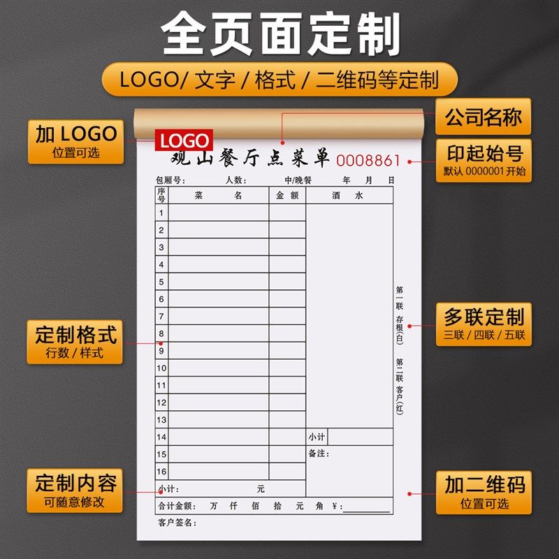 【餐厅专用】点菜单二联茶餐厅餐饮餐馆菜单本饭店菜馆开单记账本
