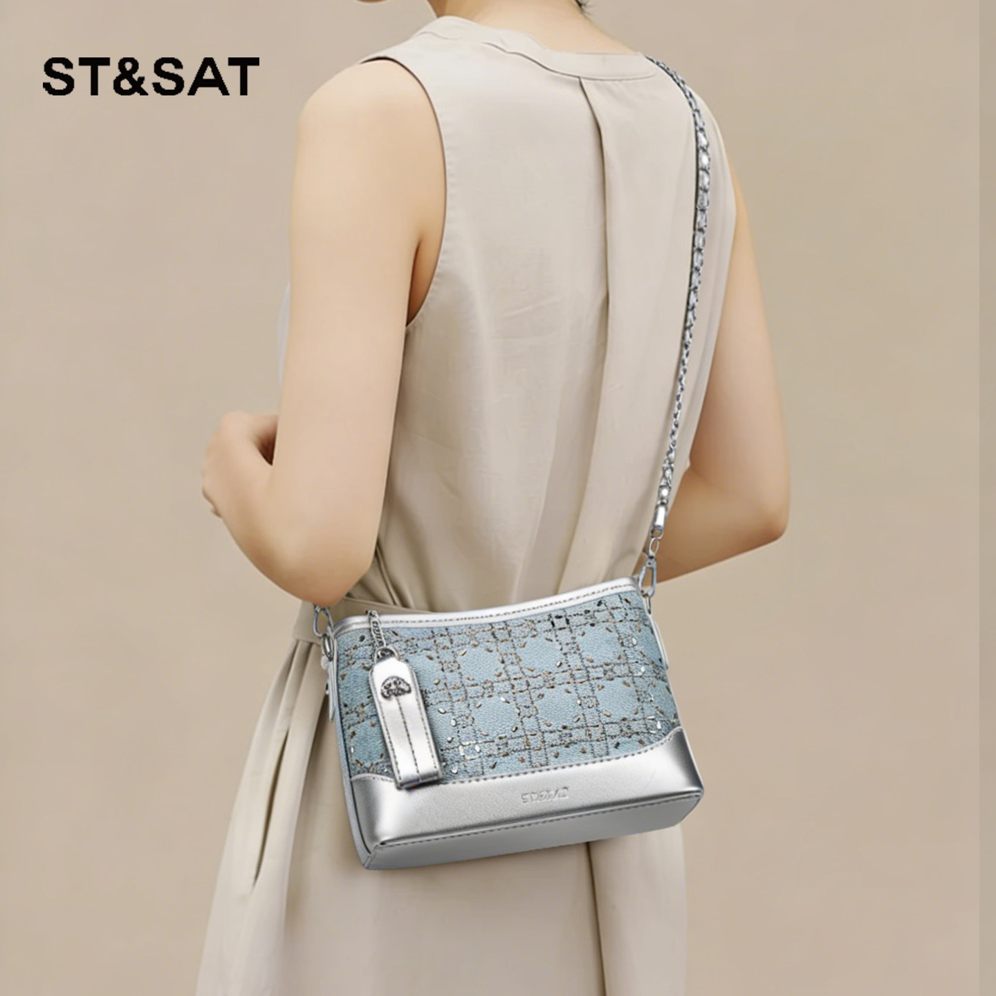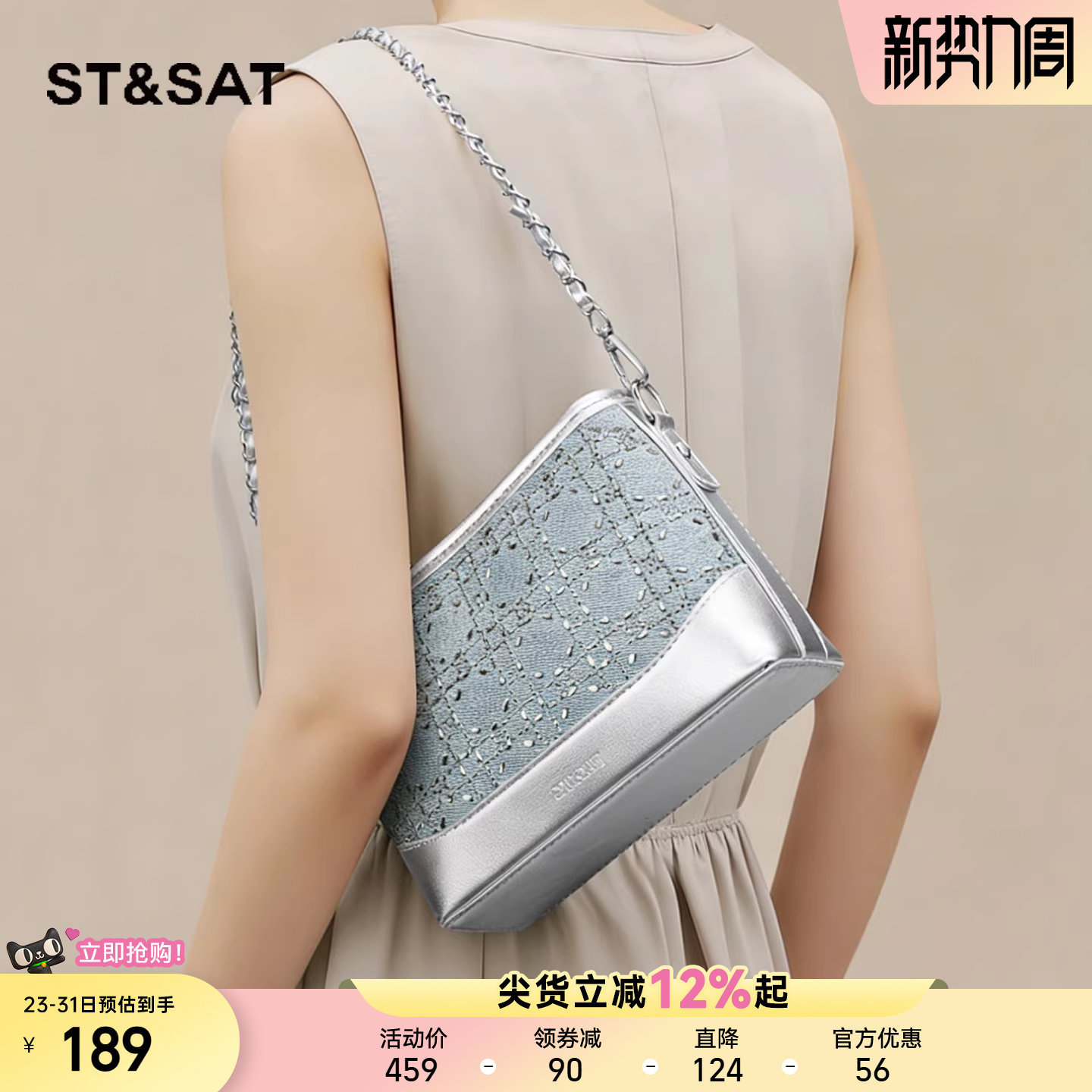 星期六丹尼牛仔包包女26新款烫钻链条包时尚高级感水桶包斜挎小包