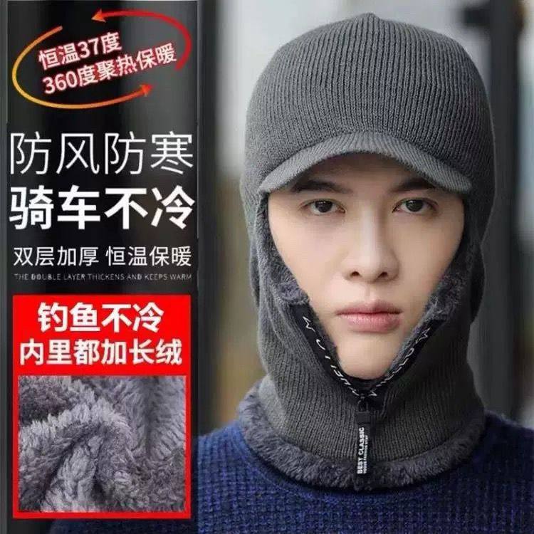 帽子男士秋冬潮毛线帽男款保暖百搭冷帽宽松大头围显脸小针织帽男