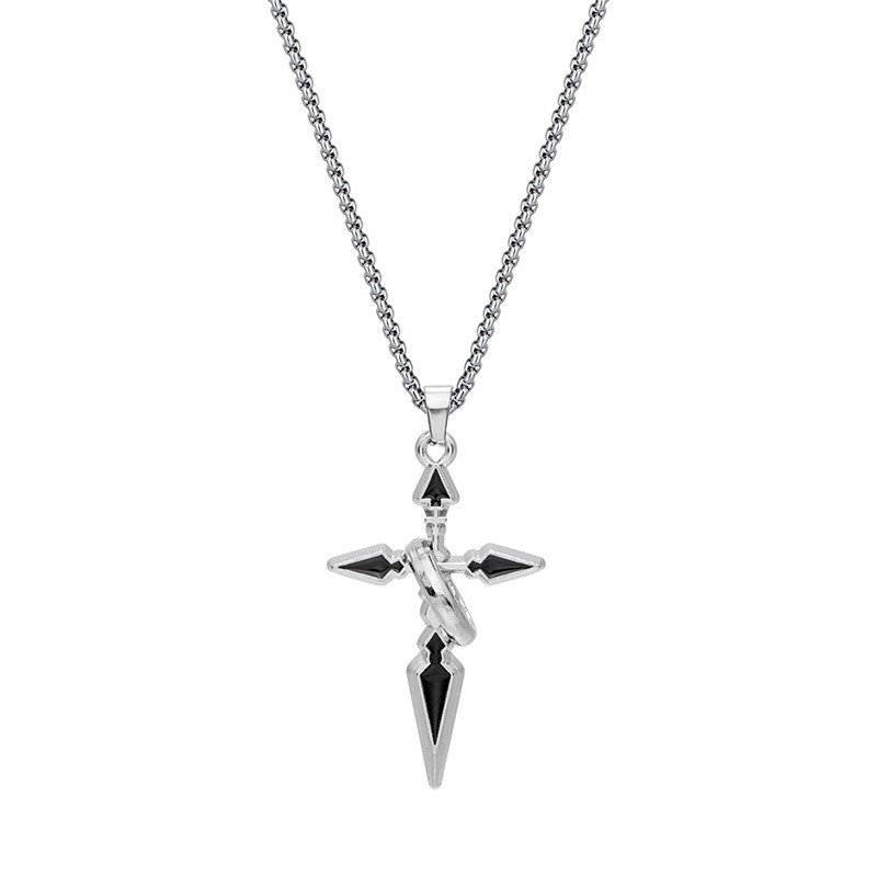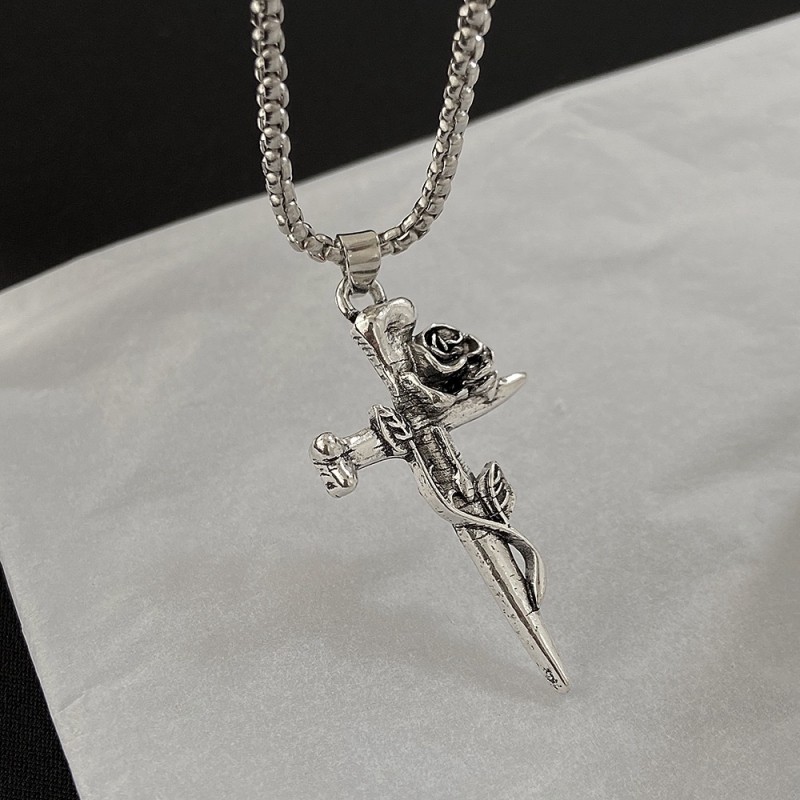 项链学生党国风十字架男女新中式个性街头复古吊坠情侣玫瑰钛钢