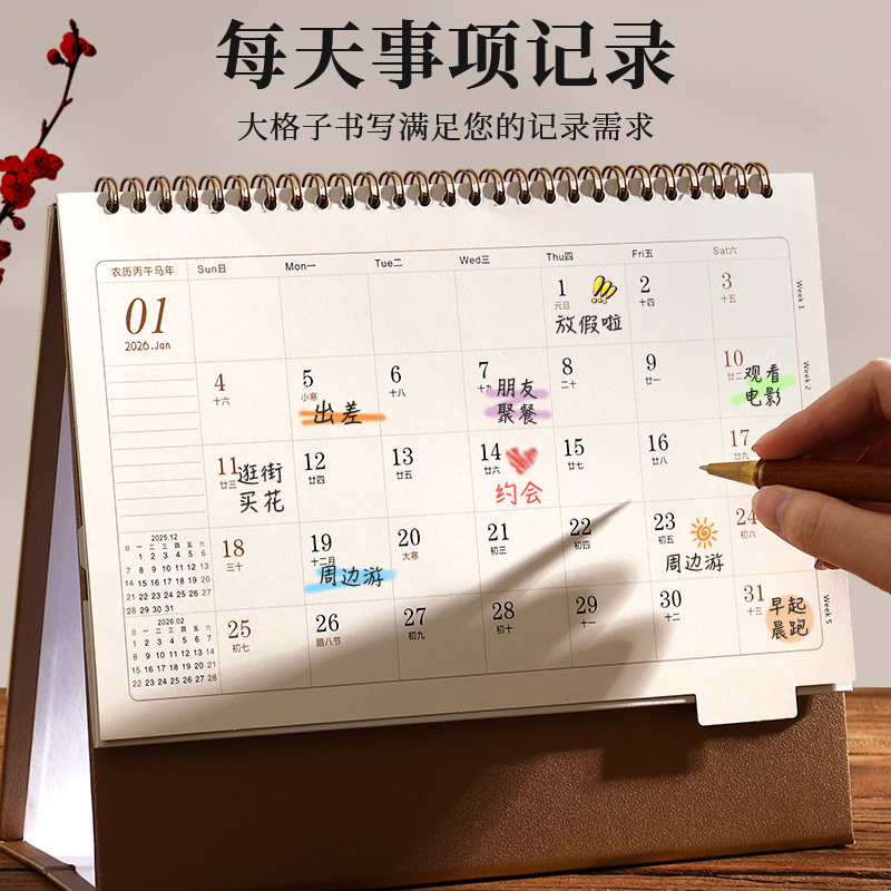 台历2026年新款日历定制logo创意简约小清新韩式办公年历个性中国风桌面摆件商务工作记事计划本订制广告月历