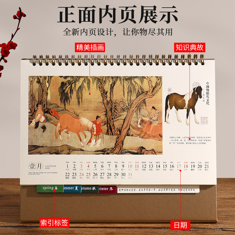 台历2026年新款中国风古典腰封精品马年日历办公室桌面创意摆件定制高级工艺打卡记事本企业公司广告logo定制
