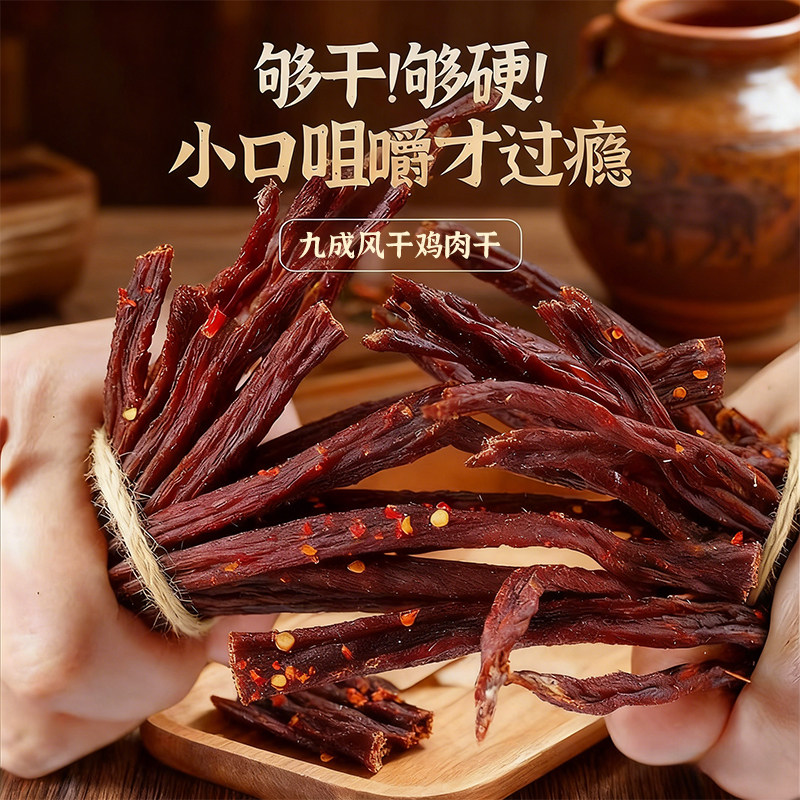 风干鸡肉干鸡胸肉干肉条麻辣耐嚼解馋小吃休闲零食品官方旗舰店