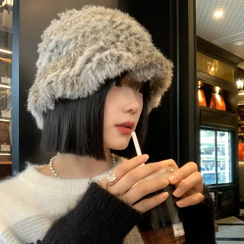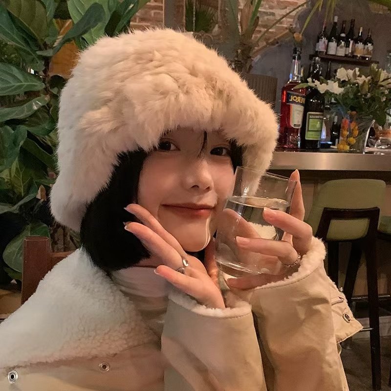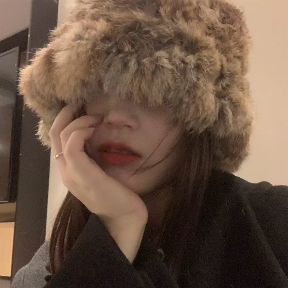 兔毛帽子女秋冬季显脸小毛茸茸毛绒帽潮保暖护耳皮草渔夫帽大头围