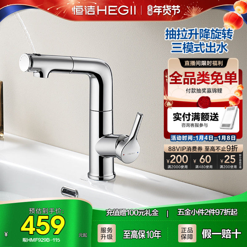 恒洁面盆龙头三出水卫浴卫生间洗发冷热家用水龙头面盆抽拉多功能