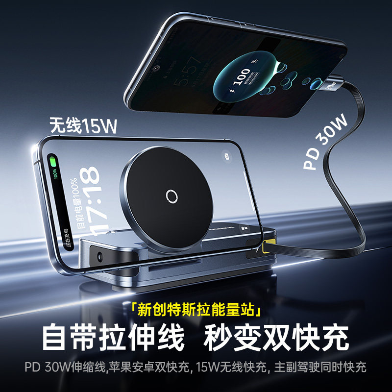 倍思车载充电器超级快充2025新款自带伸缩线汽车点烟器转换插头PD