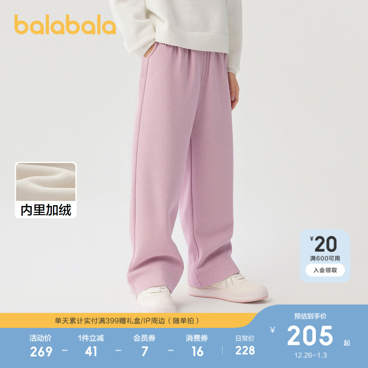 【商场同款】巴拉巴拉童装女童长裤子直筒儿童2025冬装新加绒保暖