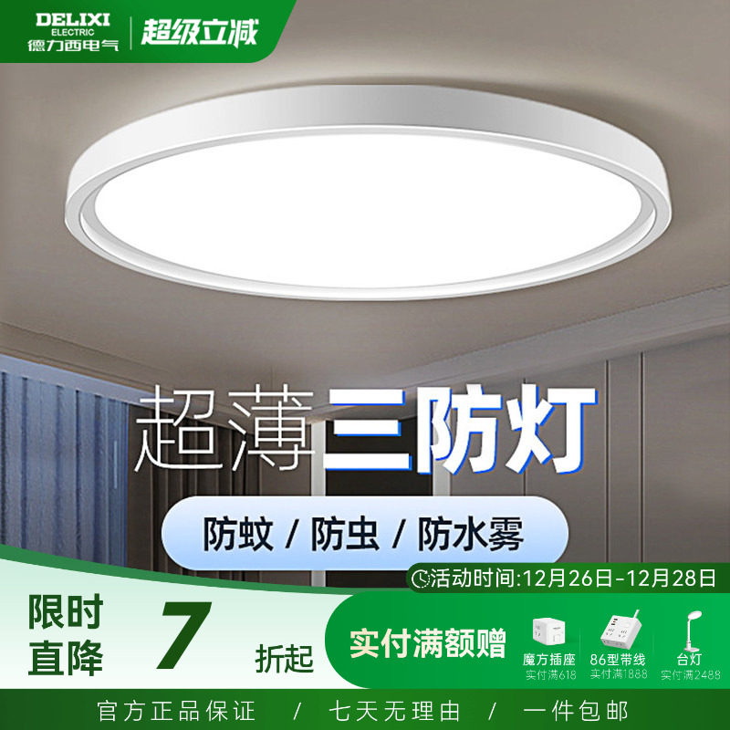 德力西超薄LED三防吸顶灯具客厅白色现代简约卧室过道走廊浴室灯