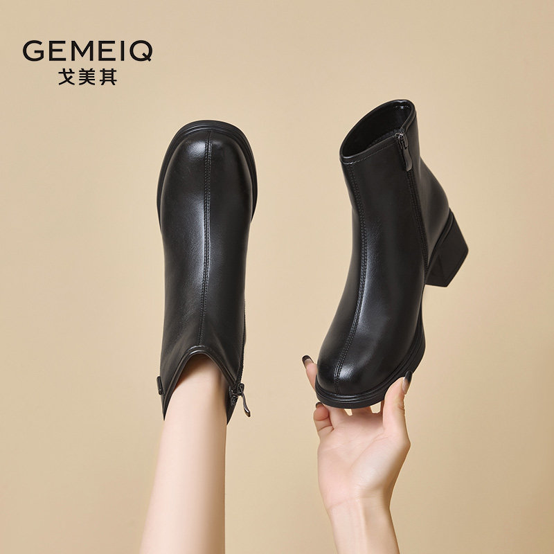 戈美其高跟短靴女款舒适新款春季侧拉链厚底增高女靴百搭粗跟靴子