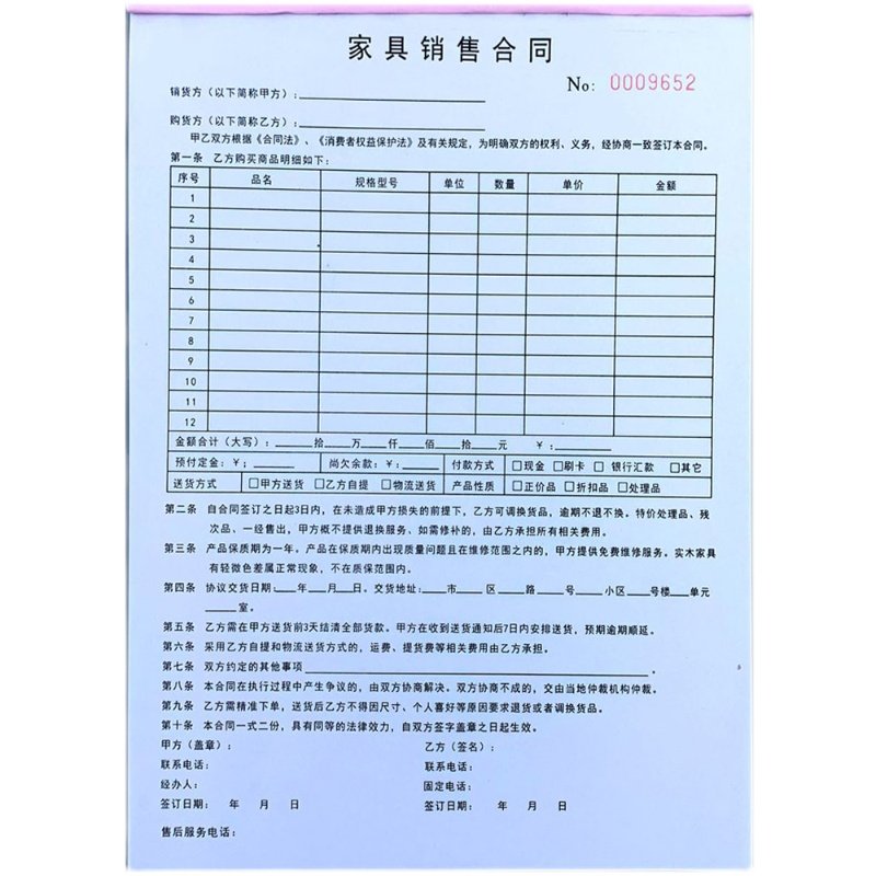 家具销售合同窗帘布艺销售单木门订货单送货单全屋家俱定货单定制