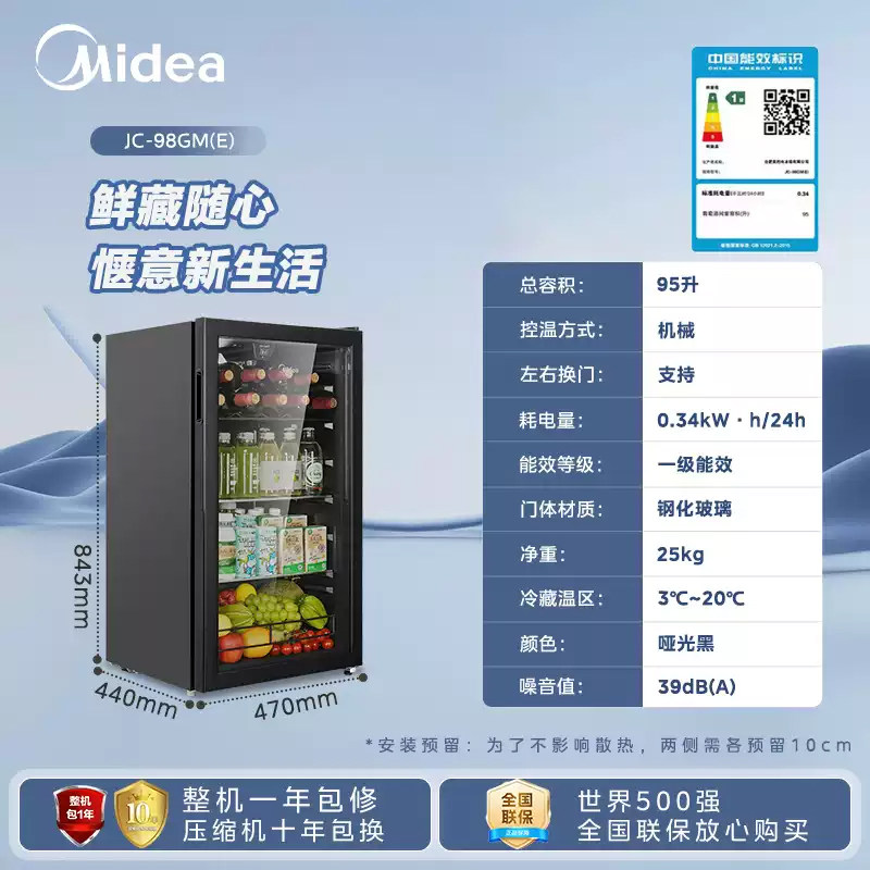 美的98小型家用冰吧茶叶饮料水果冷藏保鲜酒柜迷你办公室客厅冰箱