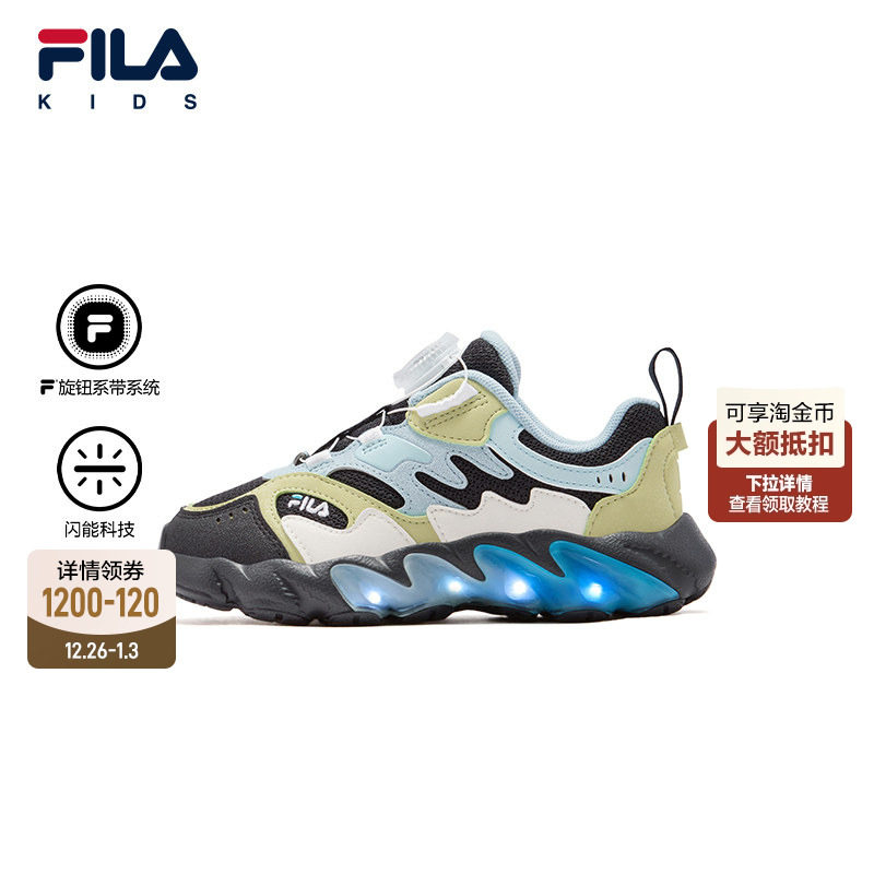 FILA斐乐儿童童鞋运动鞋子2025冬季新款男女小童旋钮扣闪灯鞋蕨草