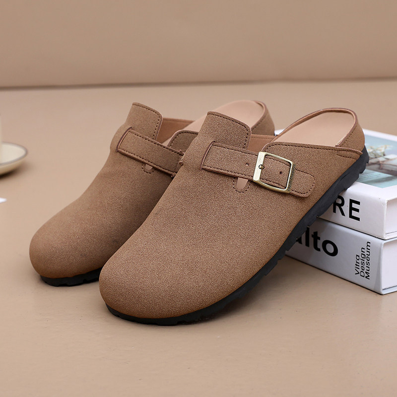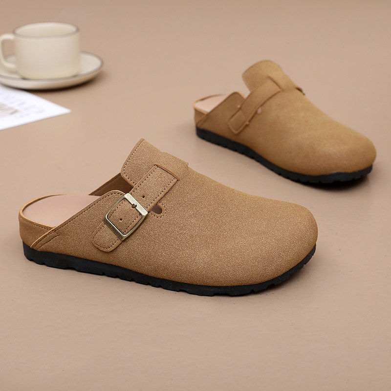 限时伴价78!真皮勃肯鞋2025新款包头半拖鞋女夏外穿平底博肯鞋男