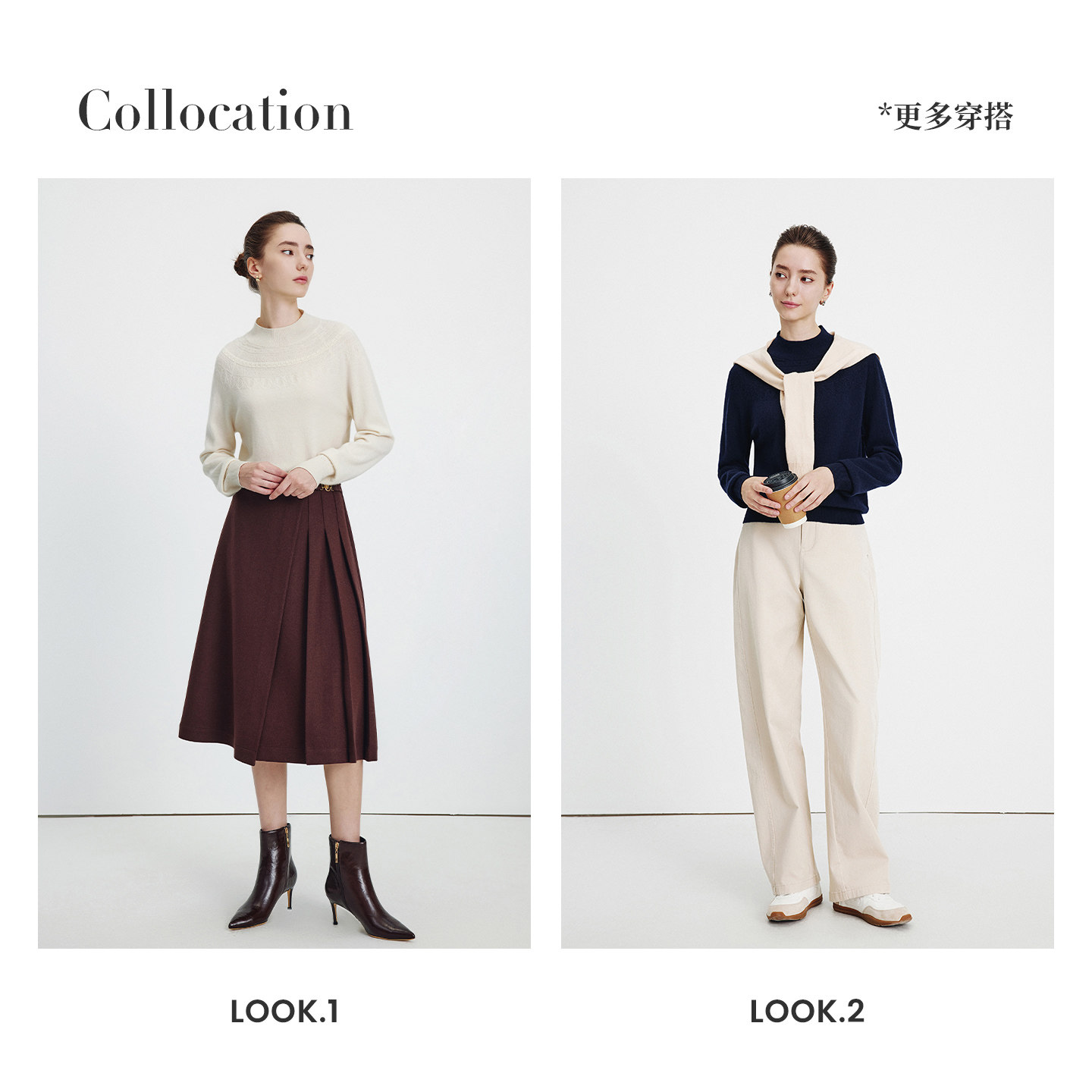 鄂尓半高2025秋冬新款安迪绒毛衣半高领套头衫洋气百搭款