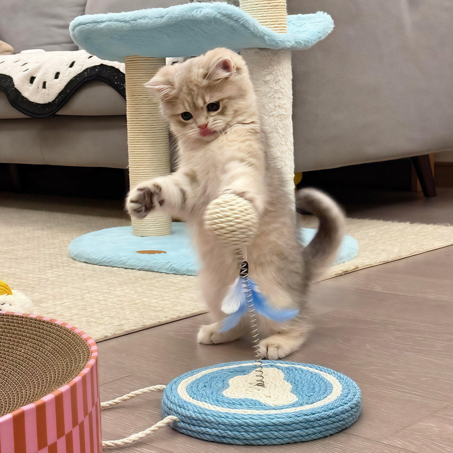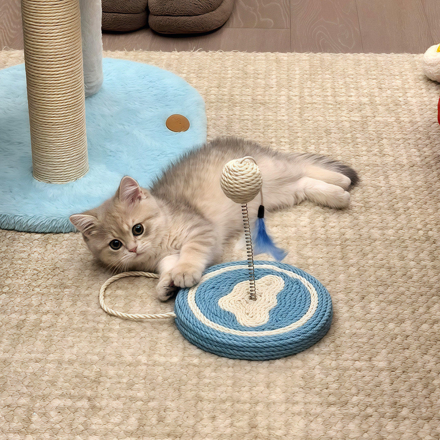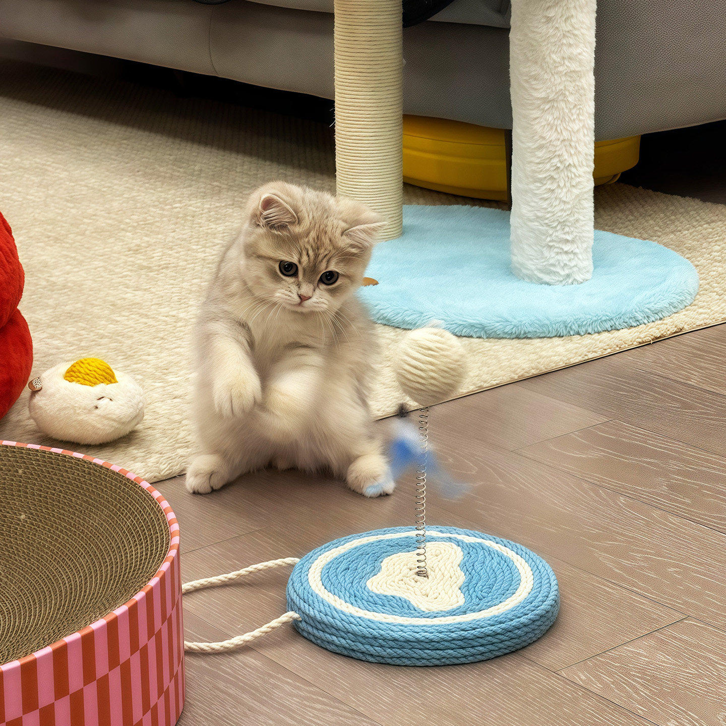 猫咪玩具小奶猫逗猫棒自嗨玩耍水果剑麻弹簧球玩具摇摆球趣味玩具