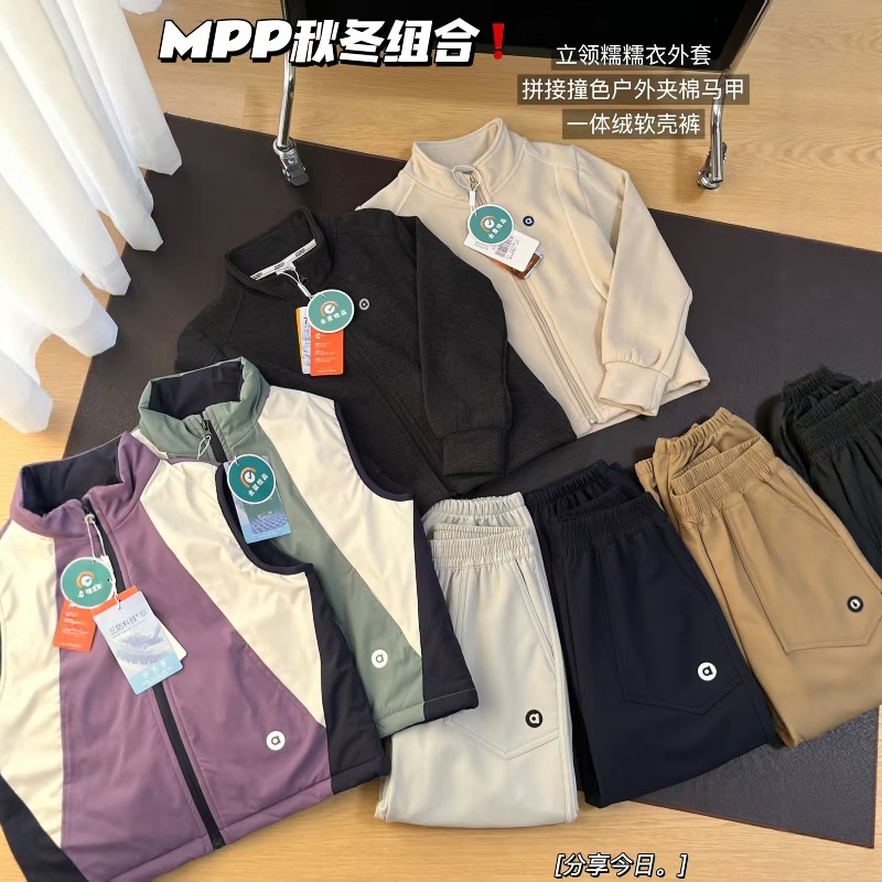 秋冬男女童户外加棉保暖马甲轻量外穿糯糯衣外套耐磨三防软壳裤