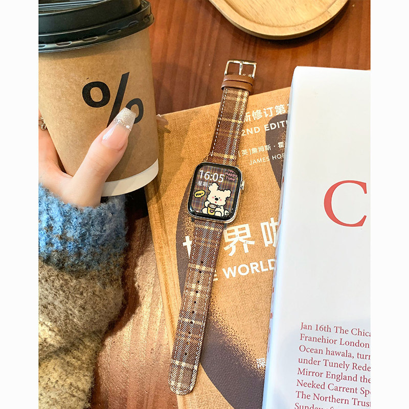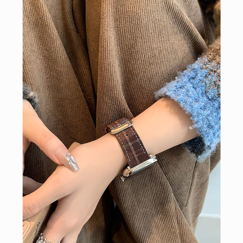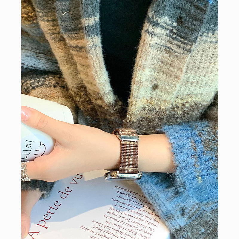 圣诞氛围适用苹果手表S11表带新款格纹毛呢皮质iwatch10/9高级小众创意8/7/6/5/4智能运动配件秋冬红棕硅胶